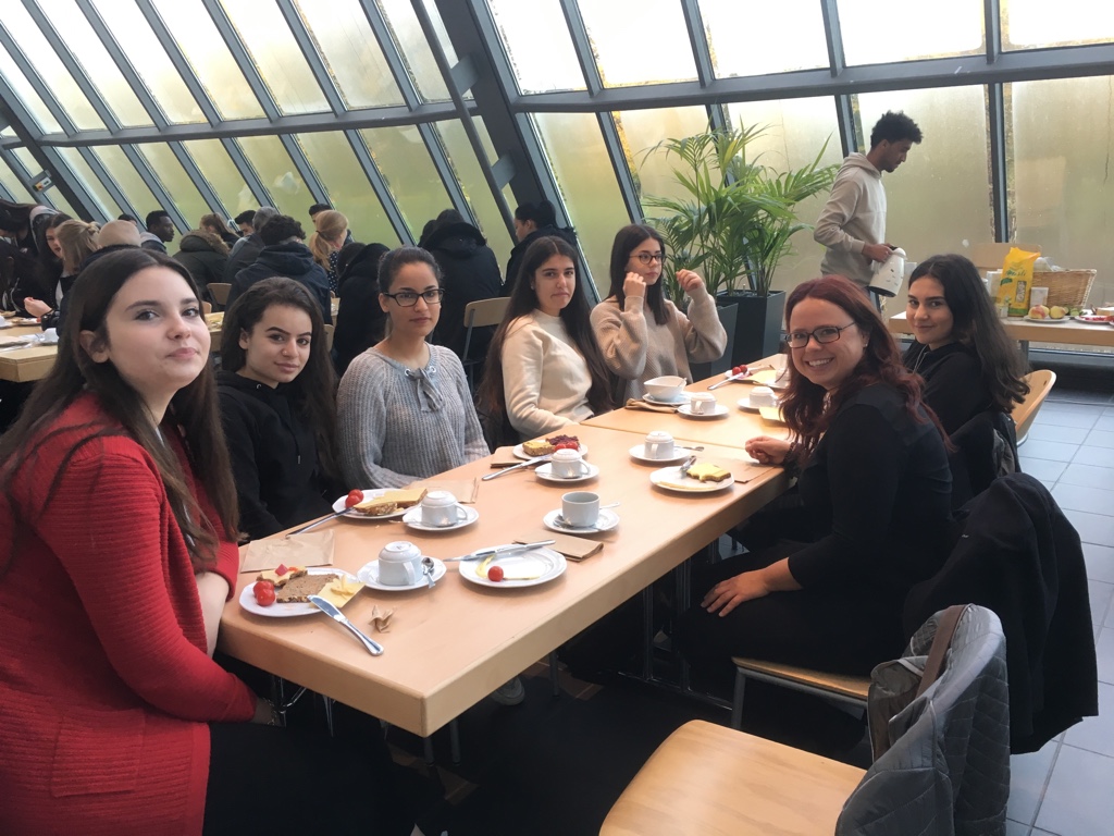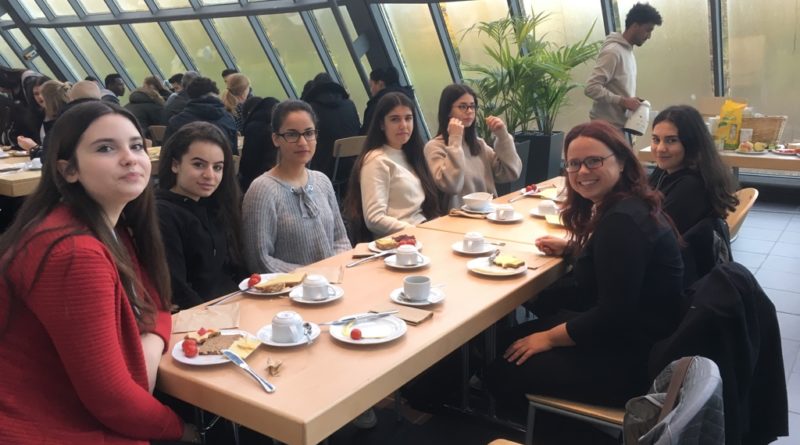 Zum Abschluss der Woche 100 % (er)leben gab es für über 120 Schüler*innen ein besonderes Frühstück im Wissenschaftspark Gelsenkirchen. Es schmeckte nicht nur besonders gut, sondern es bestand aus möglichst klimaneutralen Zutaten. Also vor allem regionale Produkte, die keine weiten Transportwege erfordern, und keine Ware aus dem Treibhaus. Ein Imker stellte seine süße Ware vor. Auf die Bananen wurde allerdings trotz CO2-Abdruck doch nicht verzichtet.
