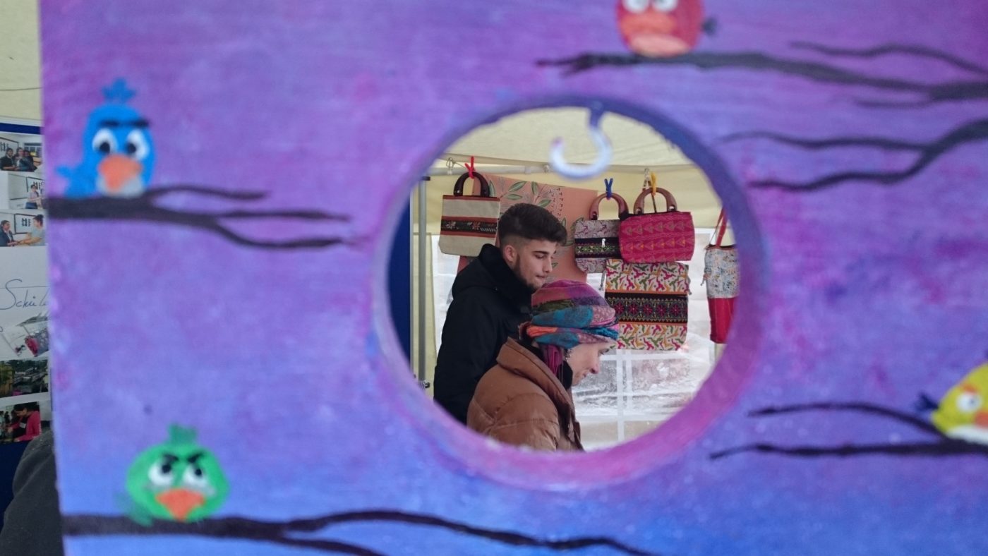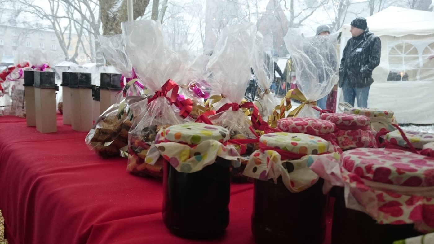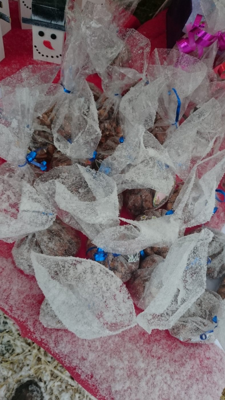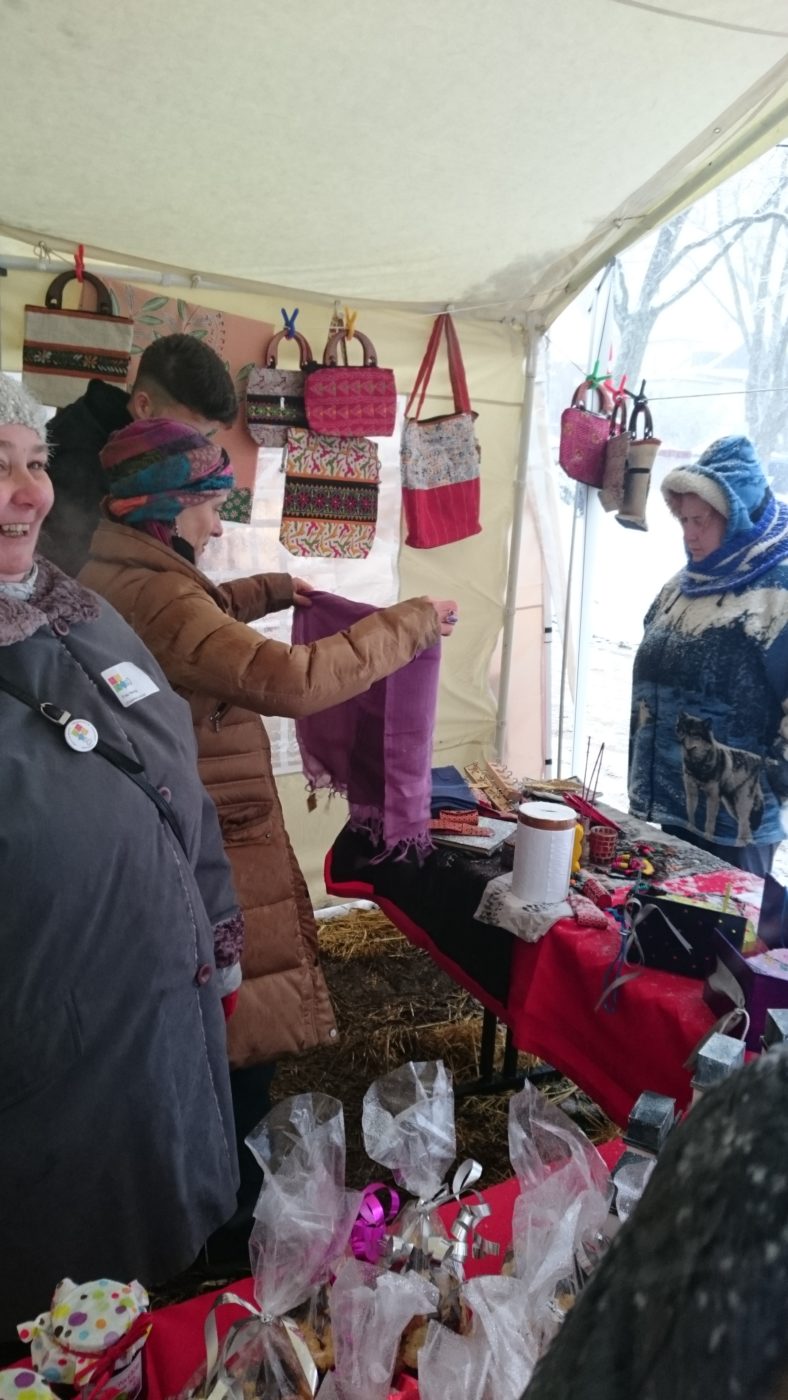 Alles war gut vorbereitet, in der Küche wurden Mandeln gebrannt, Marmelade eingekocht, Kekse gebacken und essbare Weihnachtsmänner vorbereitet. Aus Technik und Kunst kamen dann noch Vogelfutterhäuschen, Holz-Schneemänner und weiteres Dekomaterial dazu. Aus Indien hatten die Austauschteilnehmer Taschen, Tücher, Schmuck und vieles mehr mitgebracht. Der Stand war zügig aufgebaut und zur Eröffnung durch den Oberbürgermeister war alles bereit. Nur das Wetter hatte seine Hausaufgaben nicht gemacht. Der einsetzende Schneefall sah schön aus, hinderte aber wohl einige Menschen im Stadtteil am Besuch des Marktes.