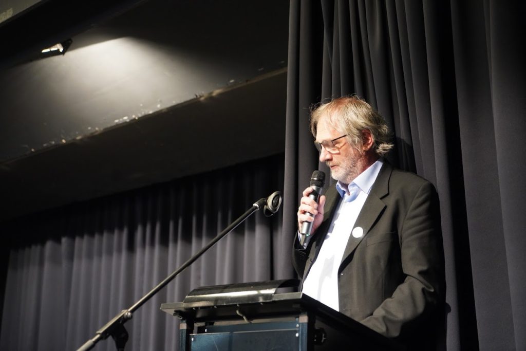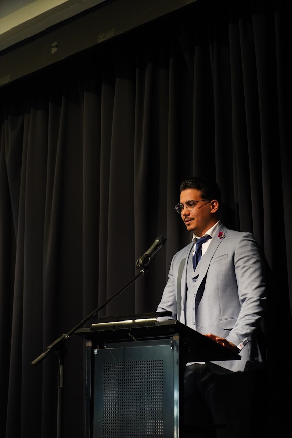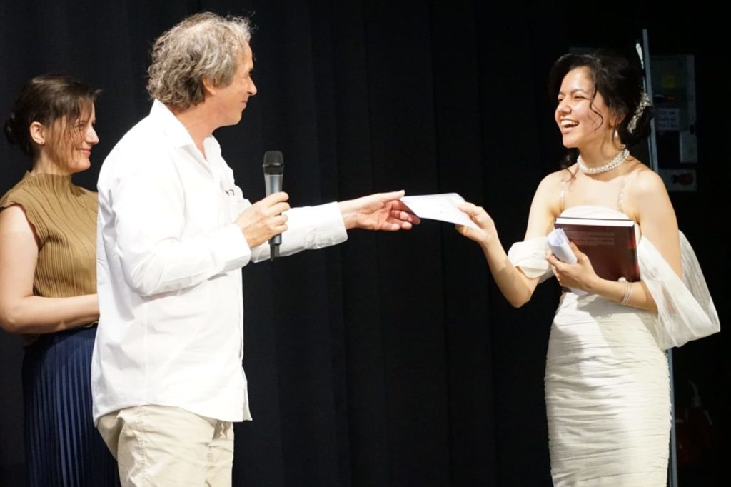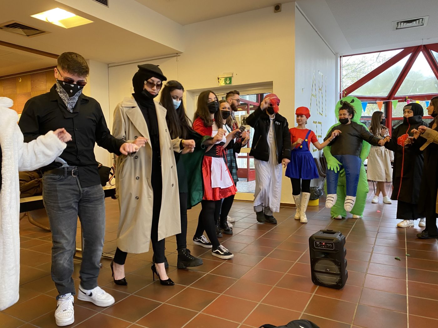 Große Stimmung kam auf, als das Publikum in einem Kahoot die Schüler*innen des Jahrgangs anhand von Kinderbildern identifizieren sollte. Abschließend erhielten die unterrichtenden Lehrer*innen noch kleine Präsente. Beim anschließenden Umtrunk im B-Foyer und auf dem Schulhof gab es dann noch die Gelegenheit für zahlreiche Erinnerungsfotos.