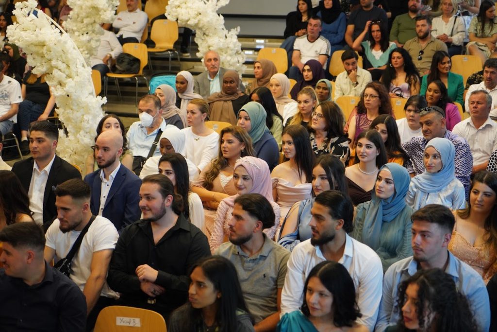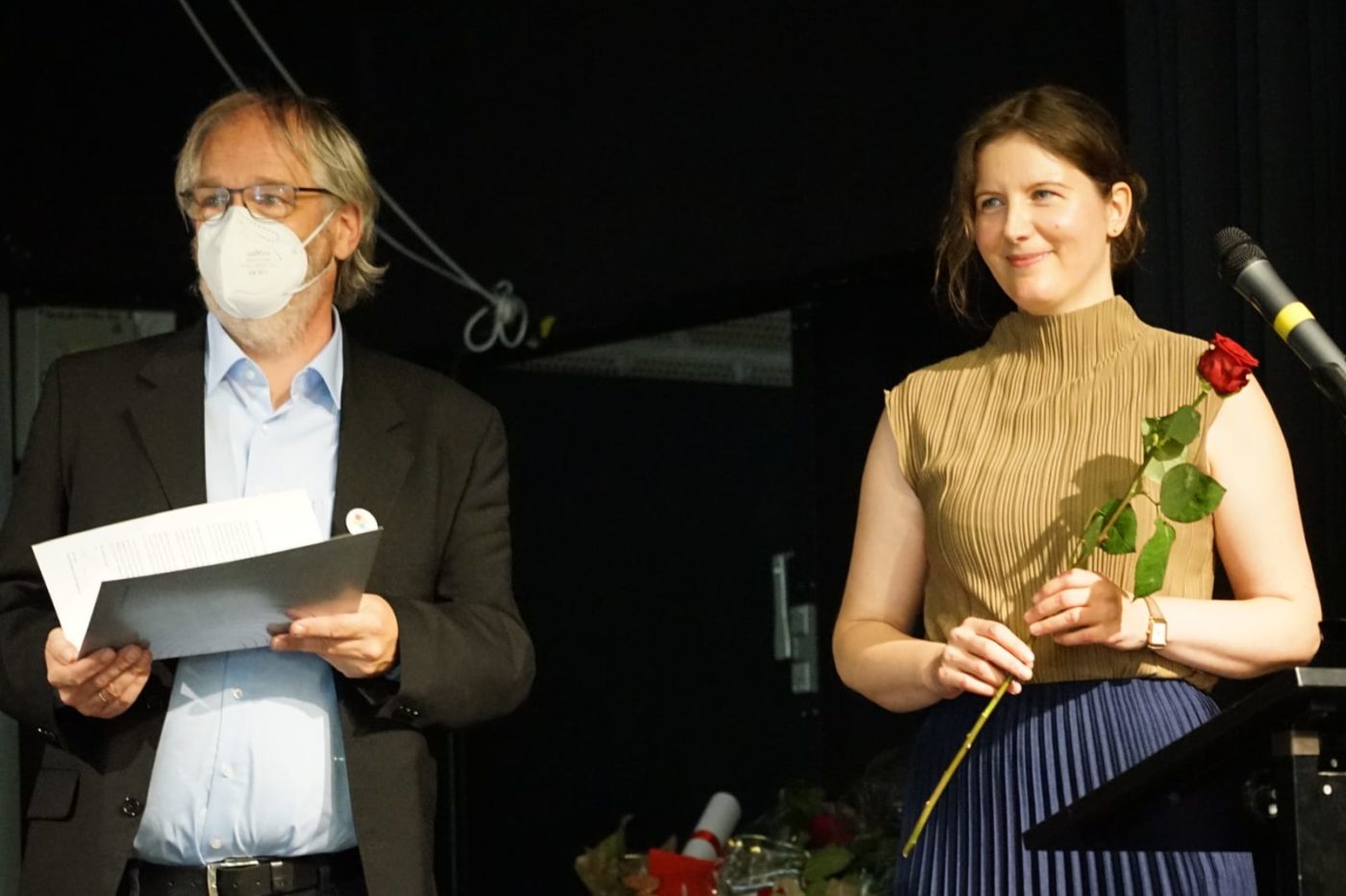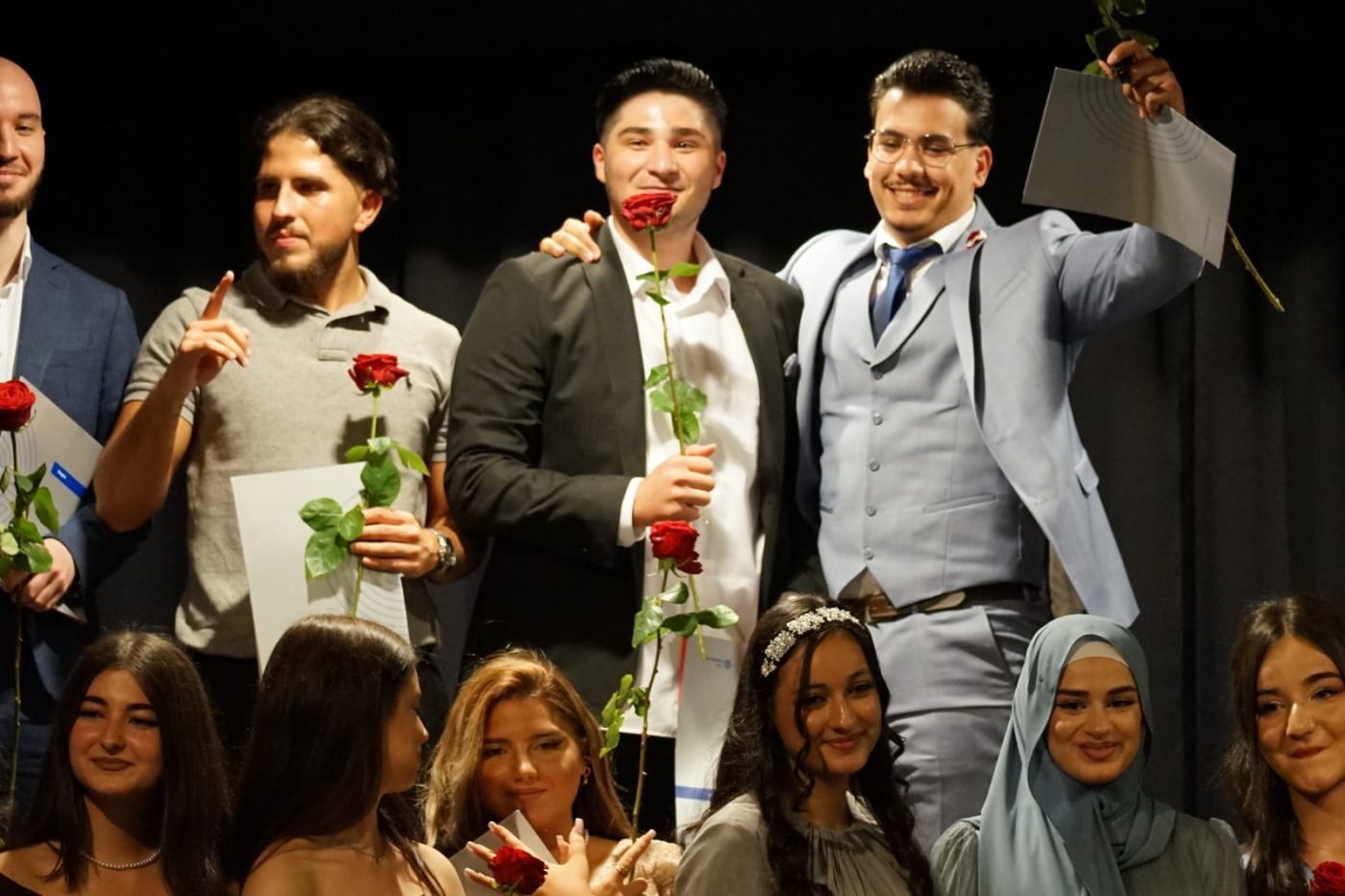 Am 22. Juni 2022 erhielten 57 Absolvent*innen durch den Schulleiter Herrn Elvert und ihre Beratungslehrerin Frau Wermelt ihre Abschlusszeugnisse. Die festliche Zeugnisübergabe wurde moderiert von Zala und Justin, die durch ein abwechslungsreiches Programm führten. Herr Elvert wies in seiner Rede auf das große Engagement der Schüler*innen des Jahrgangs für die Schule hin. Als Jahrgangsbeste wurden Zala und Omar geehrt, Zala erhielt ebenfalls den Preis als beste Schülerin im Fach Mathematik.