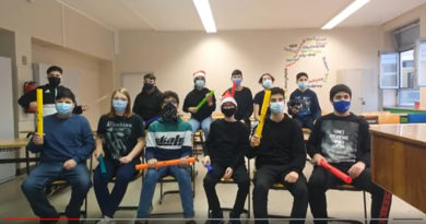 Read moreEin Weihnachtsgruß aus der Klasse 8.1, ganz Corona-konform. Hinter den Masken muss man sich ein Lächeln vorstellen.