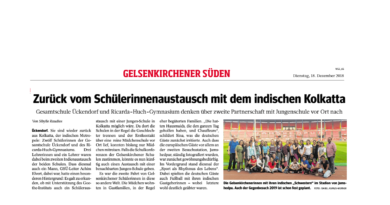 Read moreWAZ Gelsenkirchen | 18.12.2018 | Seite 14 — Zurück vom Schülerinnenaustausch mit dem indischen Kolkatta Gesamtschule Ückendorf und Ricarda-Huch-Gymnasium denken über zweite