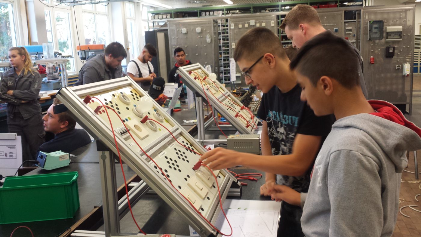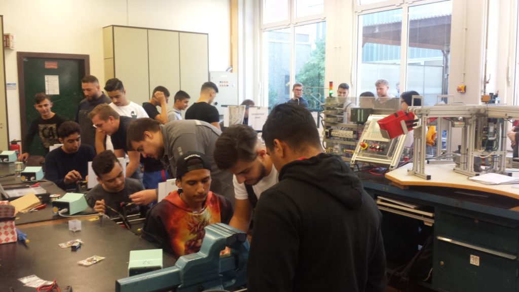 Im Anschluss stellten die Auszubildenden ihre Ausbildungsberufe Industriemechaniker/-in, Anlagemechaniker/-in, Elektroniker/-in für Betriebstechnik und Elektroanlagenmonteur/-in vor. Unsere Schülerinnen und Schüler konnten sich bei kleinen praktischen Übungen einen Eindruck verschaffen, was die Auszubildenden in Ihrer Ausbildung lernen müssen. Die angehenden Fachkräfte beantworteten nur zu gerne die vielen Fragen der Schülerinnen und Schüler. Sie berichteten außerdem über ihre persönlichen Erfahrungen und Herausforderungen in ihrem bisherigen Ausbildungsleben.