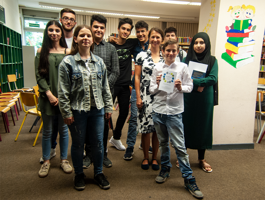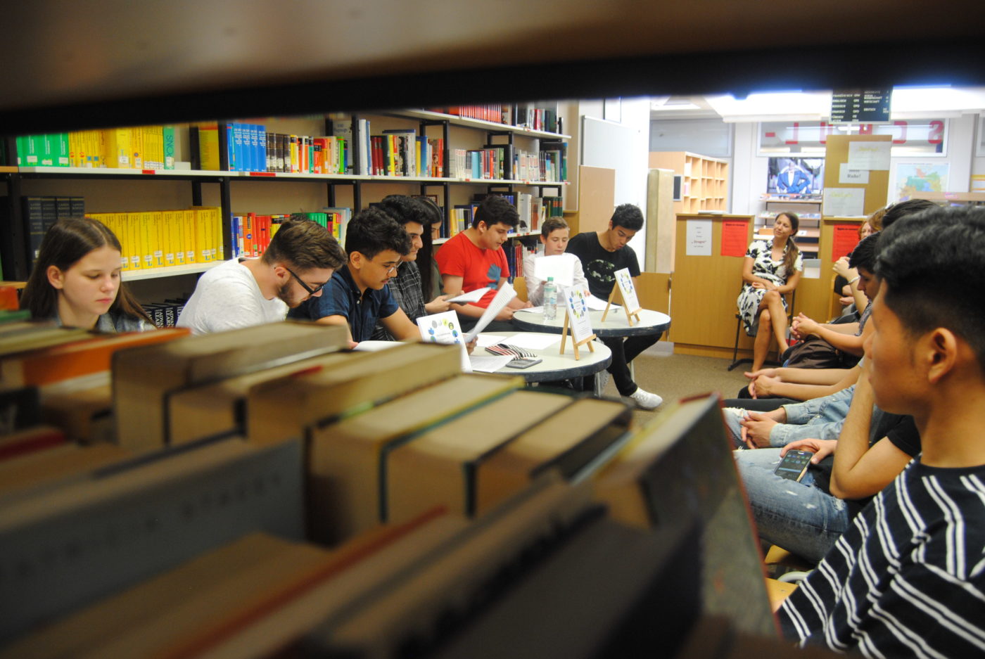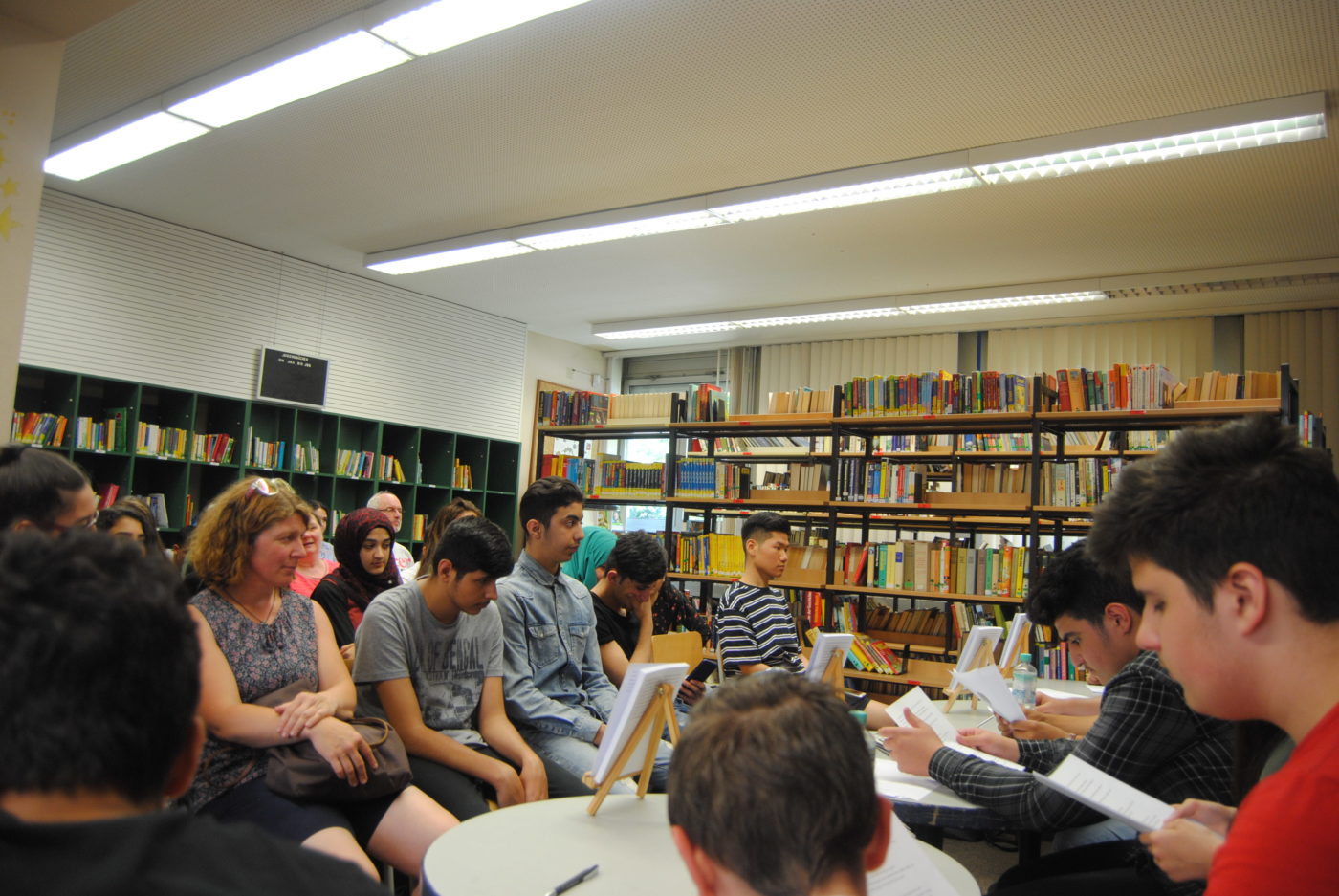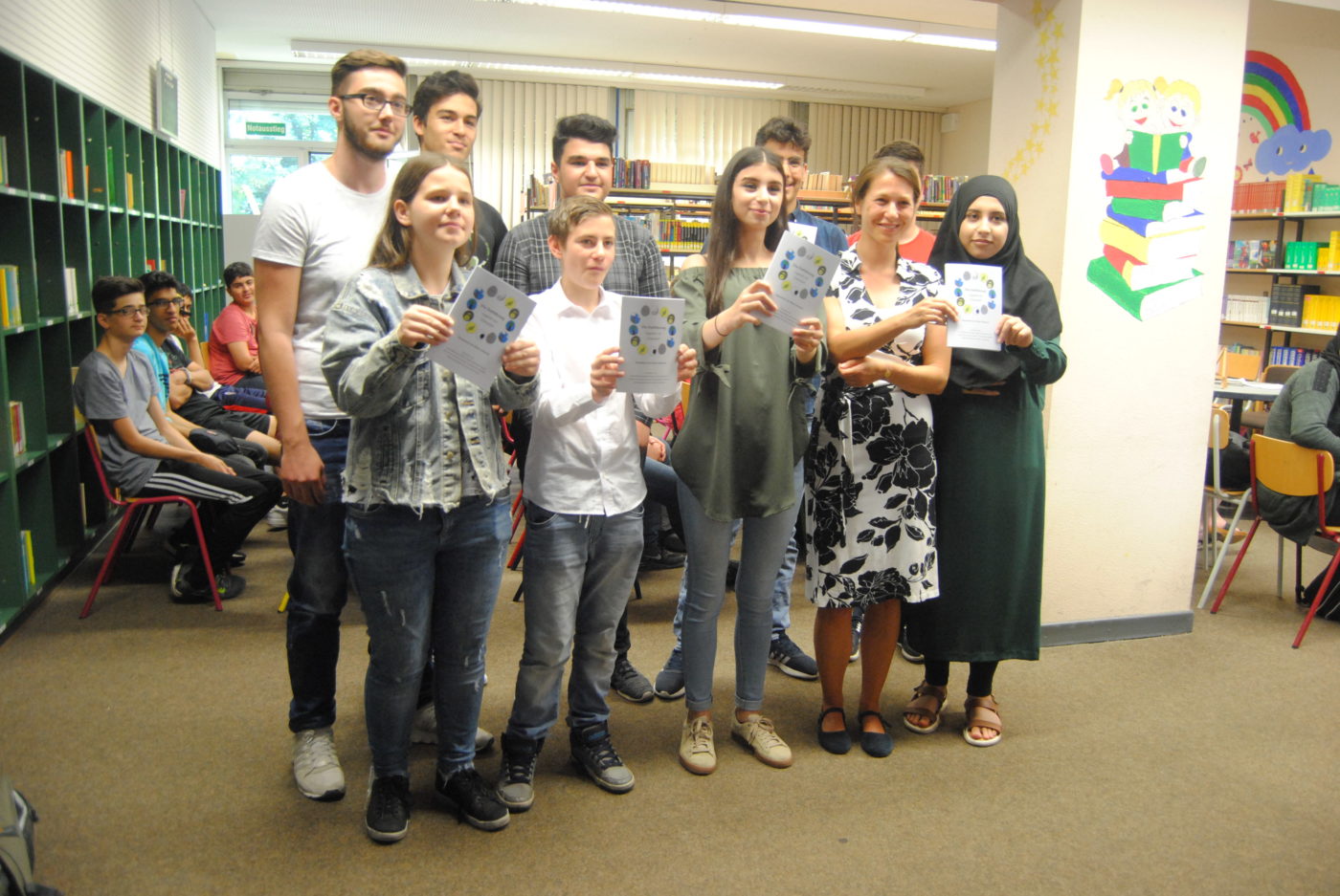 So beginnt der Roman „Die Entführung – Legende von Ückendorf“ aus der Schreibwerkstatt des 9. Jahrgangs, der am 3. Juli 2018 einem interessierten Publikum vorgestellt wurde. Die 9 Autorinnen und Autoren moderierten selbst die Vorstellung des Buches, gaben einen Einblick in die Arbeit des einjährigen Workshops und lasen Ausschnitte aus dem 200 Seiten umfassenden Roman.