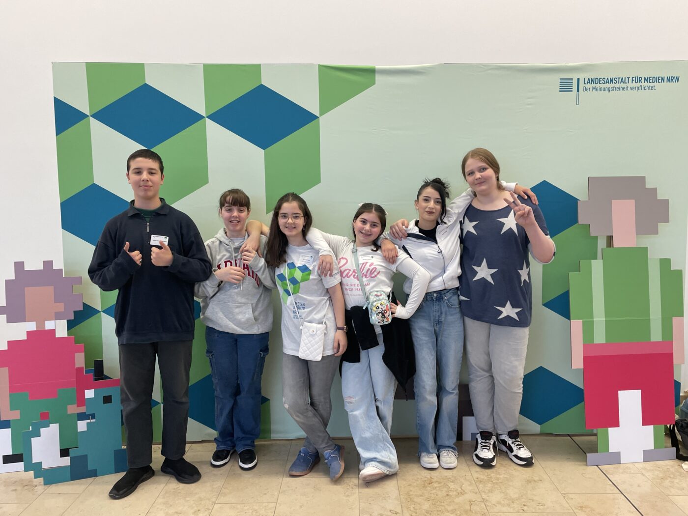 Am 10. September 2024 hatten sechs Schüler:innen der Klassen 7 bis 10 sowie zwei Lehrkräfte der GSÜ die Gelegenheit, an der Medienscouts Convention NRW in der Mercatorhalle in Duisburg teilzunehmen. Unter dem Motto „Schick’s mir richtig“ drehte sich dieses Jahr alles um den bewussten Umgang mit dem Versenden und Weiterleiten digitaler Inhalte. Neben spannenden Diskussionen zur Erkennung und Bekämpfung von Desinformation und zur Auseinandersetzung mit gefährlichen Online-Challenges bot die Convention wertvolle Einblicke in die digitale Welt.