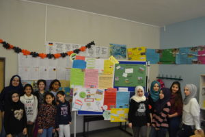 Arbeit an den Plakaten für die Projektwoche zum Thema „Wir und unsere Heimatländer“