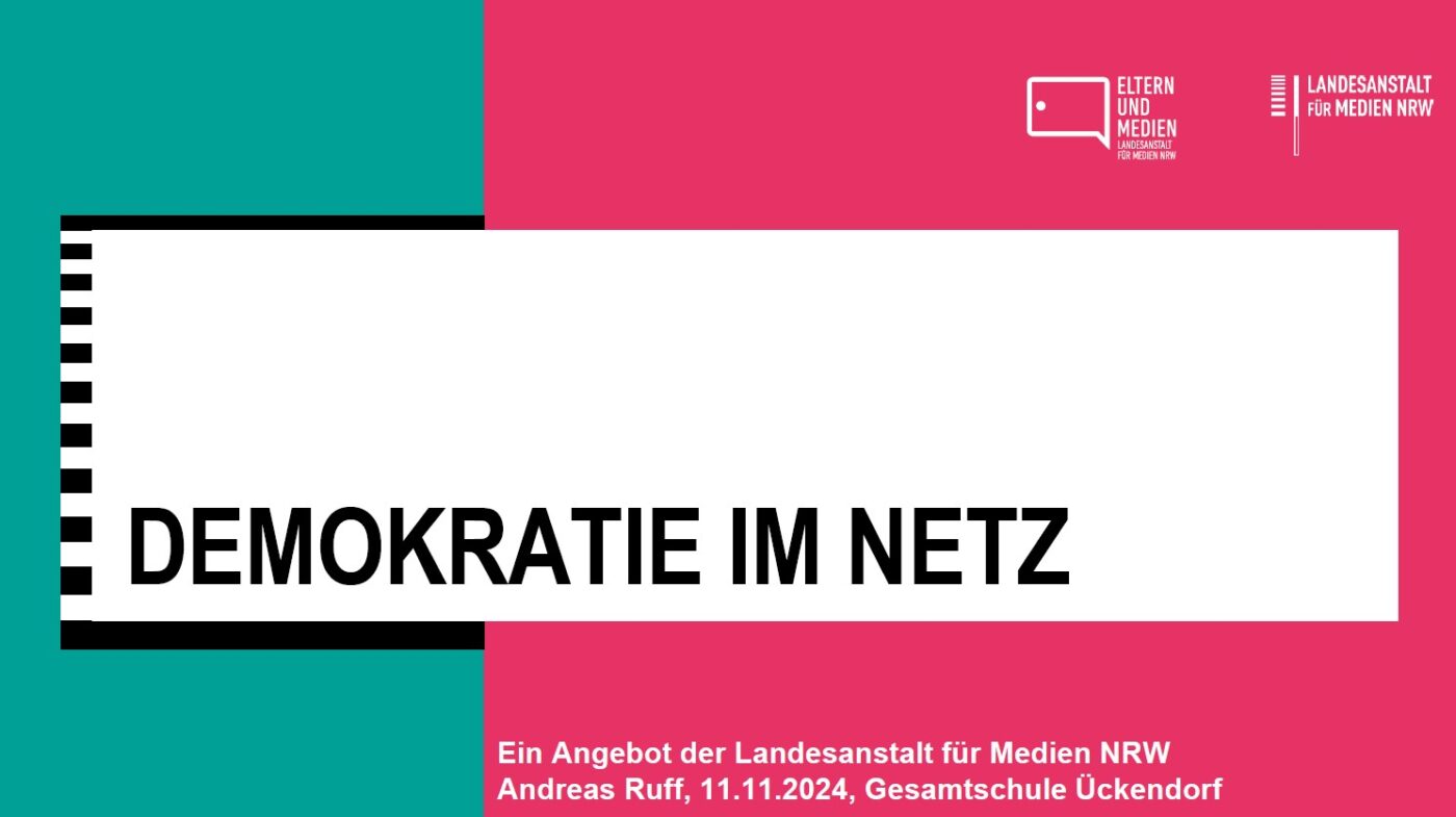 Am Montag, den 11. November 2024 fand an der GSÜ der diesjährige Elternabend zum Thema „Demokratie im Netz“ statt, der von der Landesanstalt für Medien unterstützt wurde. Ziel der Veranstaltung war es, Eltern und Erziehungsberechtigte für die Herausforderungen und Chancen der digitalen Welt zu sensibilisieren und sie mit praktischen Tipps im Umgang mit digitalen Medien zu unterstützen.