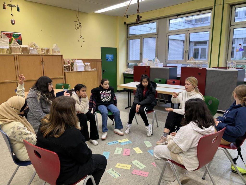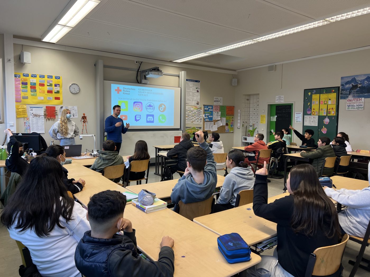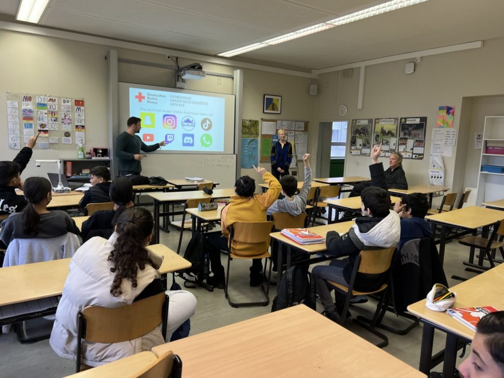 Dann folgte die Trennung in Mädchen- und Jungengruppen. Hier konnten die Schüler*innen in einem geschützten Rahmen weitere Fragen zu sensiblen Bereichen stellen, wie z.B. Freundschaft, erster Verliebtheit, Gefühlen von Ablehnung und Ausgrenzung und vielem mehr. Eine anonyme Fragerunde komplementierte die gelungene Arbeit des DRK Teams.