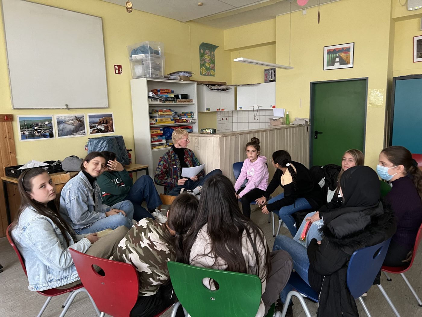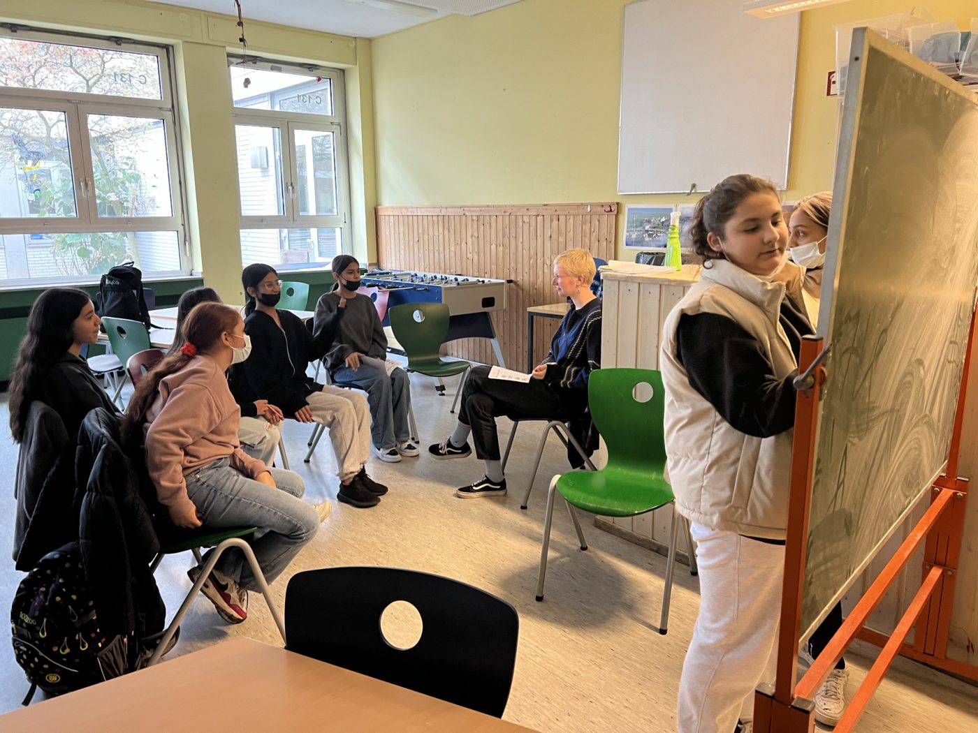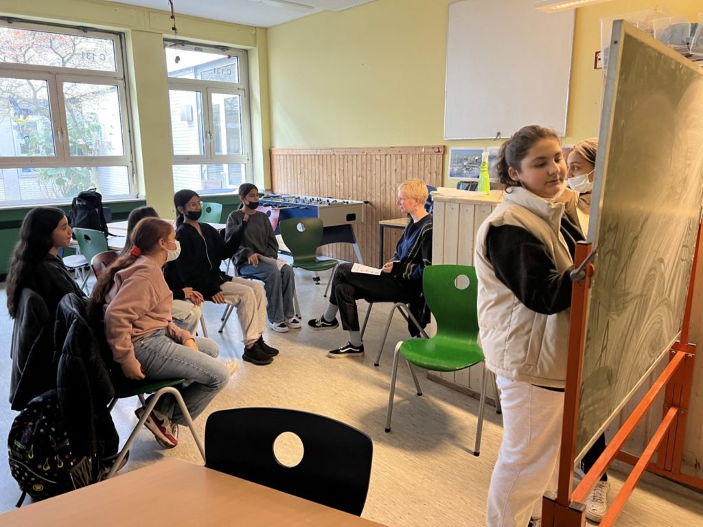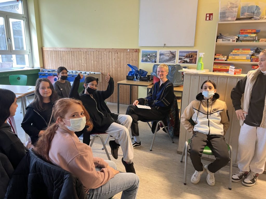 Aber auch alle Klassenlehrer*innen des gesamten sechsten Jahrgangs zeigten engagiert Flagge gegen sexualisierte Gewalt. An die Gruppenarbeit mit den Schüler*innen schlossen sich nämlich Reflexionsgespräche in Form einer intensiven Nachbesprechung mit den jeweiligen Klassenleitungen und dem Team des DRK an. Hierbei wurden den Klassenleitungen auch Möglichkeiten und Hilfen an die Hand gegeben, die begonnene Arbeit in der eigenen Klasse weiter zu führen und zu verstetigen.