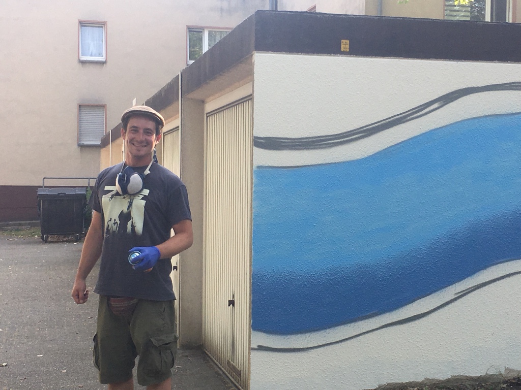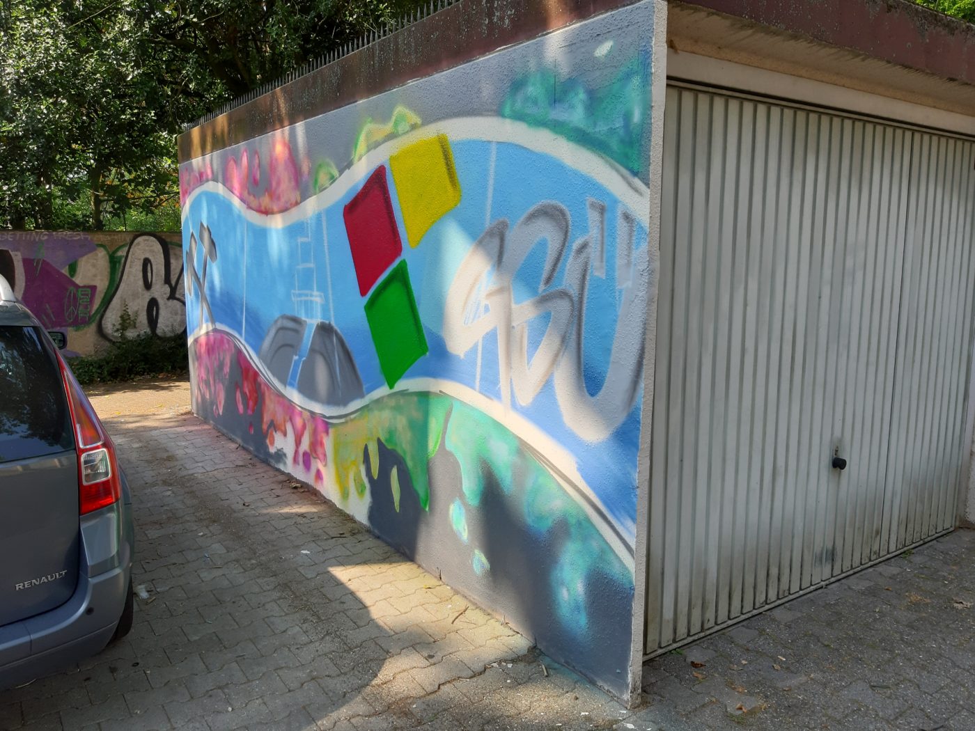 Aber weit gefehlt: Frau Courtial, tätig in der Sozialberatung der Wohnungsbaugesellschaft, kam mit einem tollen Angebot im Gepäck: die beiden zur Bochumer Straße zeigenden Garagenwände, die zu den Häusern gehörten, würden immer wieder mit wilden Schmierereien verschandelt, egal, wie oft diese übergestrichen würden. Da sei man bei der Vivawest auf die Idee gekommen, die Wände mit Graffitis künstlerisch gestalten zu lassen. Und da wir ja praktisch Nachbarn seien, wäre es doch schön, wenn in einer Kooperation der Schule mit der Wohnungsbaugesellschaft eine Kunstaktion zustande kommen könnte, die Materialkosten und die Grundierung der Wände würde die Vivawest übernehmen.