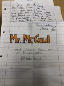 Unter anderem hat er in mehreren Jahrgängen Schülerinnen und Schüler in Kleingruppen unterrichtet und sich sehr aktiv bei der Planung und Durchführung unserer jährlichen London-Fahrt eingebracht. Er war im Erasmus+ Projekt „Safe School Successful Students“ tätig sowie in der Streitschlichter-AG unserer Schule. Am Mittwoch, den 29.5.2019 war sein letzter Arbeitstag und er wurde besonders von seinen Schülerinnen und Schülern sehr herzlich (vorerst?) verabschiedet.