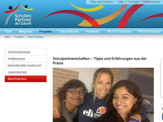 Unser Indienaustausch mit der Modern High School for Girls (MHS) in Kolkata hat nun auch nationale Beachtung gefunden. Die Initiative „Schulen: Partner der Zukunft“ wirbt mit dem Beispiel der GSÜ sowie dem Burgau-Gymnasium Düren und dem Städtischen Adolf-Weber-Gymnasium München für weitere Schulpartnerschaften mit PASCH-Schulen im Ausland. Den ganzen Artikel finden man auf der Website des pasch-net.