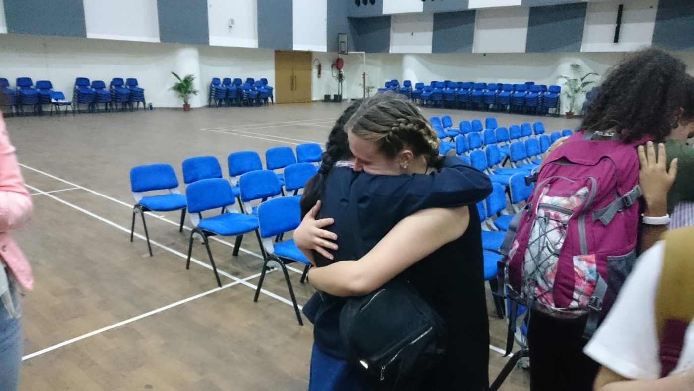 Und dann hieß es auch schon Abschied nehmen. Da das Ricarda-Huch-Gymnasium und die Gesamtschule-Ückendorf verschiedene Flüge gebucht hatten, sahen sich hier die Schülerinnen zum letzten Mal alle zusammen. Der herzliche Abschied, die vielen Umarmungen und auch die Tränen zeigten deutlich, wie sehr die Schülerinnen in diesem Austauschjahr zusammengewachsen waren.