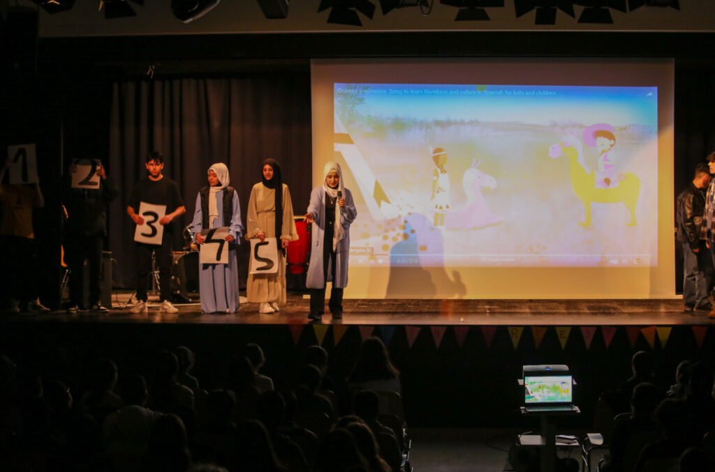 Die Veranstaltung startete mit Begrüßungen in den vielen Sprachen, die in unserer multilingualen Schule gesprochen werden. Nach einem Beitrag zur Geschichte des Tages des Kindes gab es neben den tänzerischen Darbietungen der Tanz-AG, Gesangsdarbietungen verschiedener Klassen und des Schulbands. Zudem wurde das Programm durch verschiedene interaktive Darbietungen der Spanischkurse bereichert.