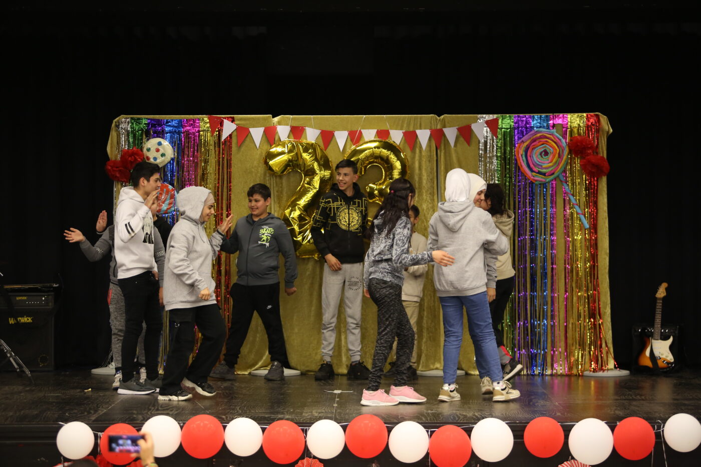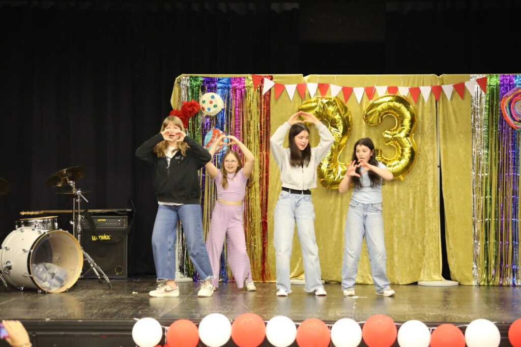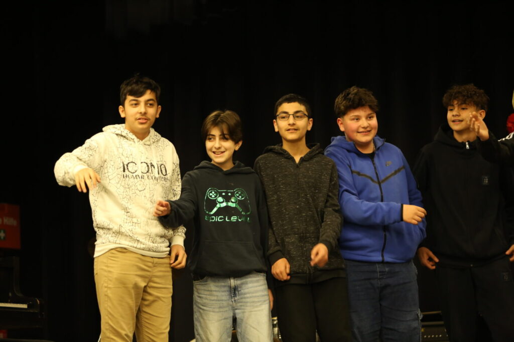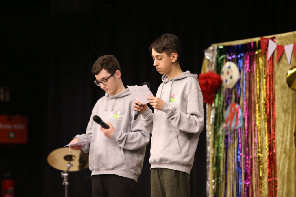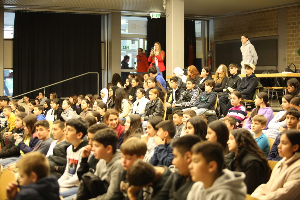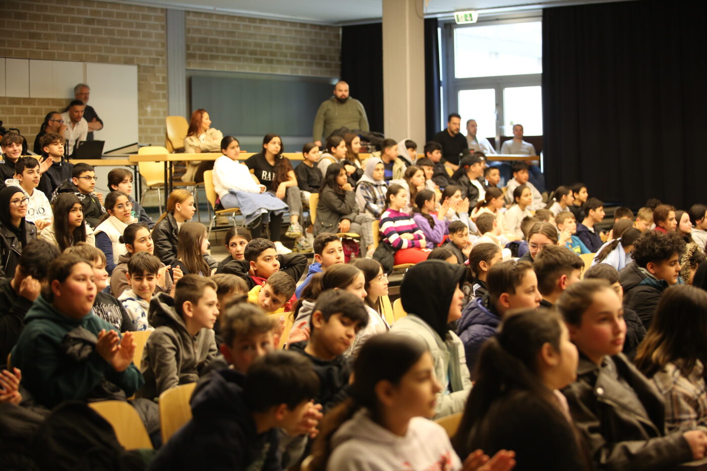 Die Veranstaltung startete mit Begrüßungen in den vielen Sprachen, die in unserer multilingualen Schule gesprochen werden. Nach einem Beitrag zur Geschichte des Tages des Kindes gab es neben den tänzerischen Darbietungen der Tanz-AG, Gesangsdarbietungen verschiedener Klassen und des Schulbands. Zudem wurde das Programm durch verschiedene interaktive Darbietungen des Spanischkurses auf dem 7. Jahrgang bereichert. Einem besonderen Applaus gab es für Abbas aus der EF, der sein selbst komponiertes Rap-Song „Bitter“ präsentierte und für Leonita (6.5.), die auf dem Klavier ein Lied vorspielte. Zum Abschluss überraschten Herr Altun und Herr Karabacakoglu das Publikum mit einem Mini-Konzert.