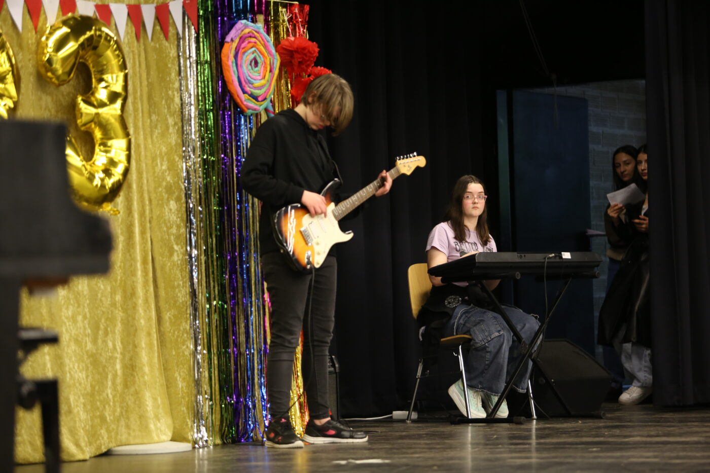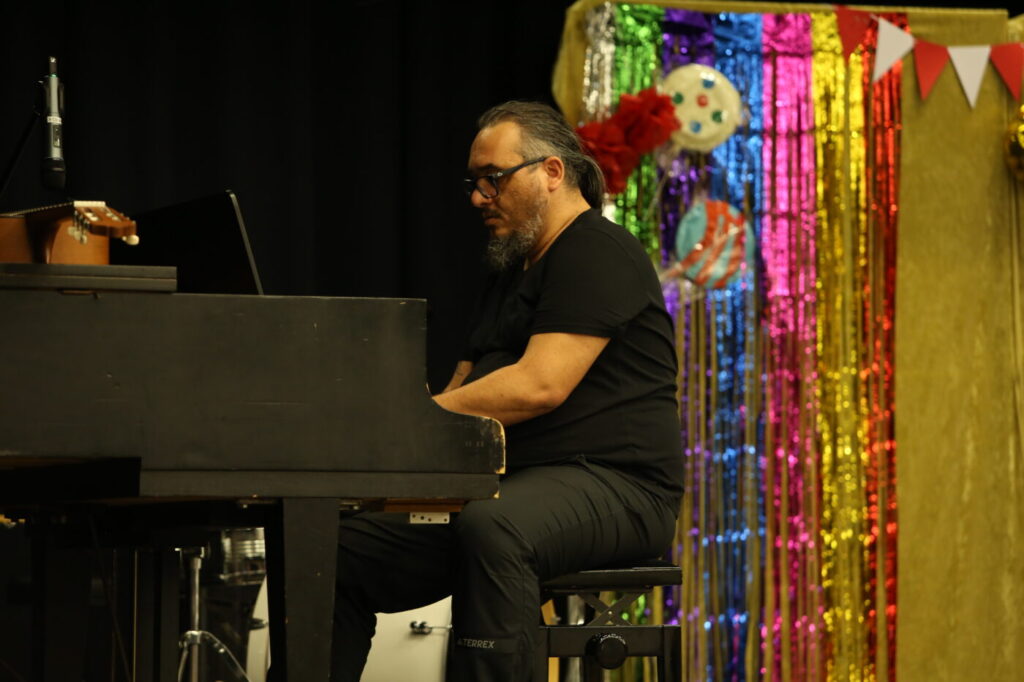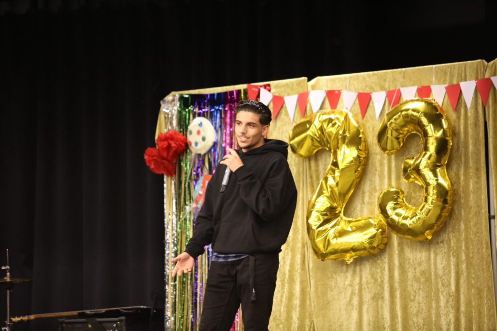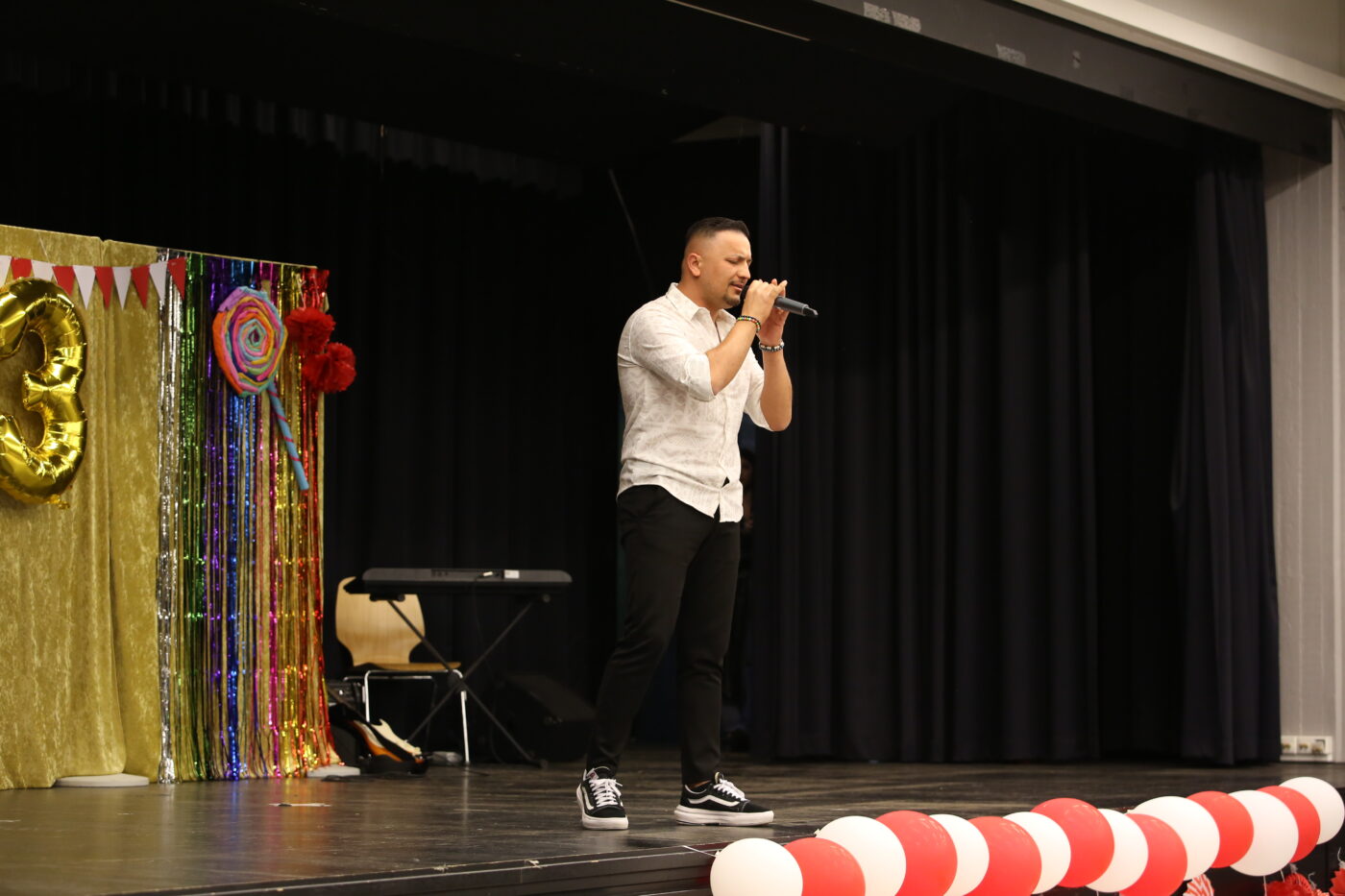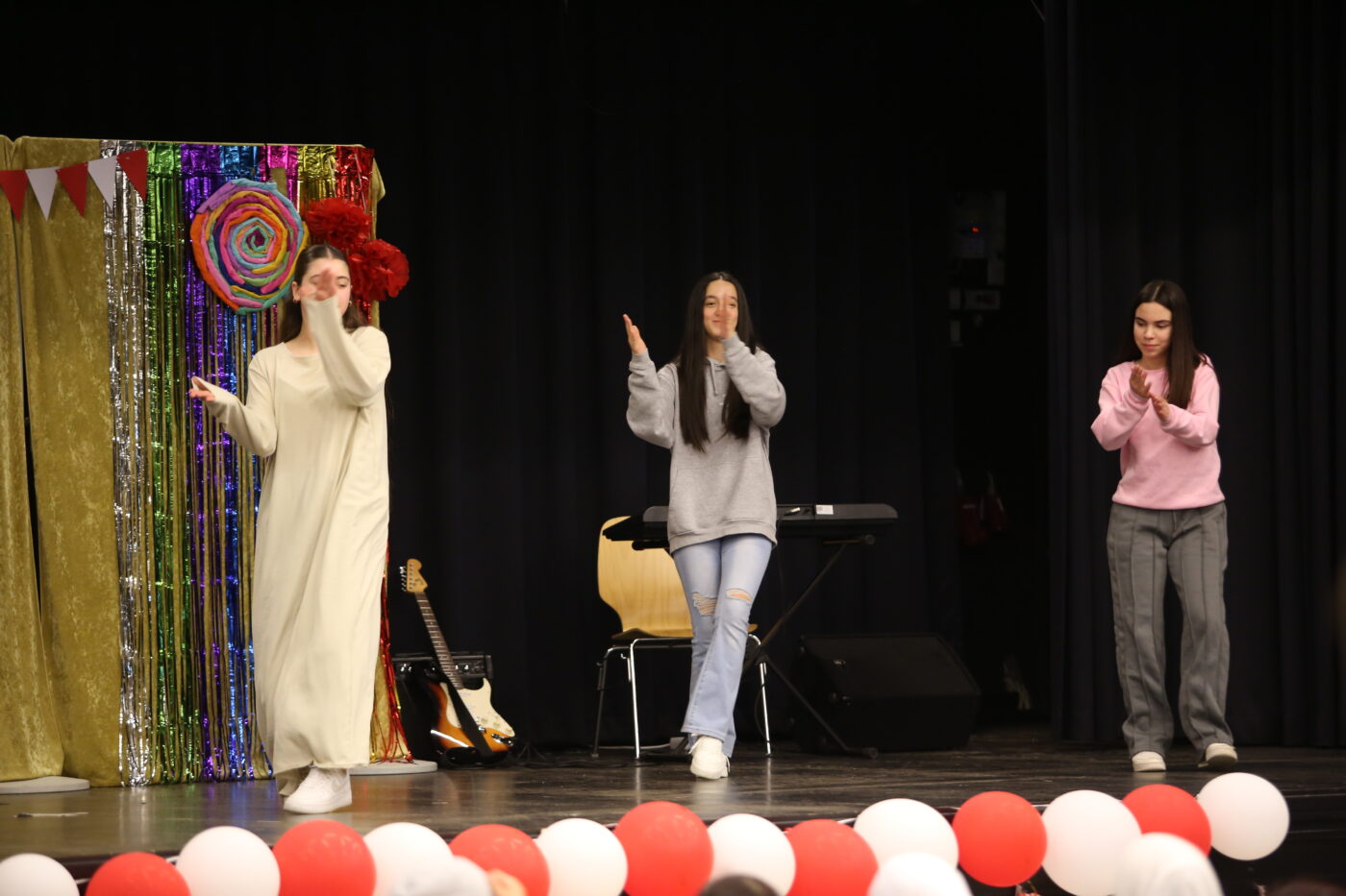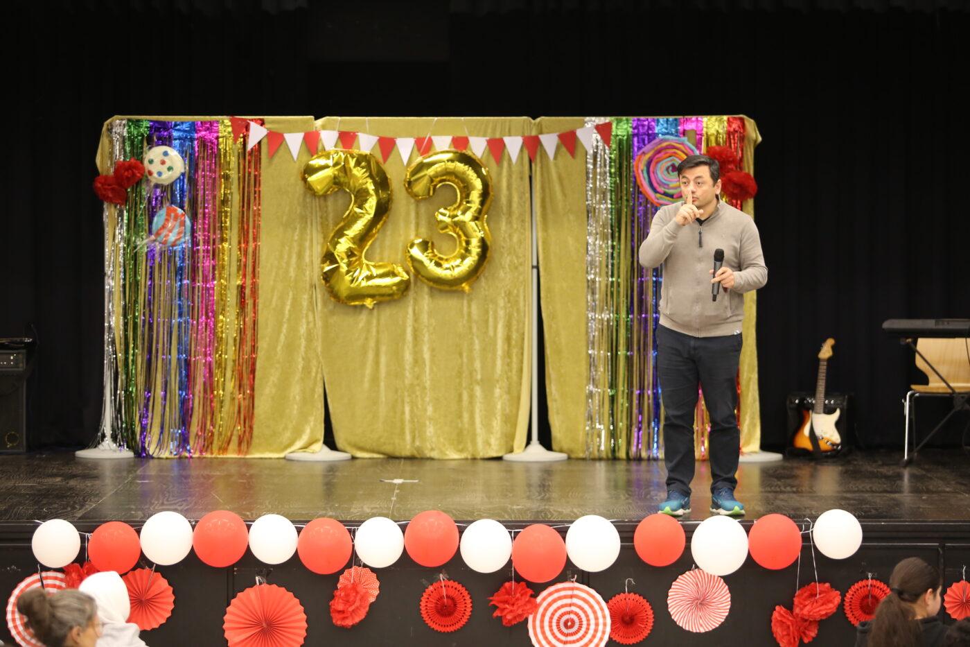 Die Veranstaltung startete mit Begrüßungen in den vielen Sprachen, die in unserer multilingualen Schule gesprochen werden. Nach einem Beitrag zur Geschichte des Tages des Kindes gab es neben den tänzerischen Darbietungen der Tanz-AG, Gesangsdarbietungen verschiedener Klassen und des Schulbands. Zudem wurde das Programm durch verschiedene interaktive Darbietungen des Spanischkurses auf dem 7. Jahrgang bereichert. Einem besonderen Applaus gab es für Abbas aus der EF, der sein selbst komponiertes Rap-Song „Bitter“ präsentierte und für Leonita (6.5.), die auf dem Klavier ein Lied vorspielte. Zum Abschluss überraschten Herr Altun und Herr Karabacakoglu das Publikum mit einem Mini-Konzert.