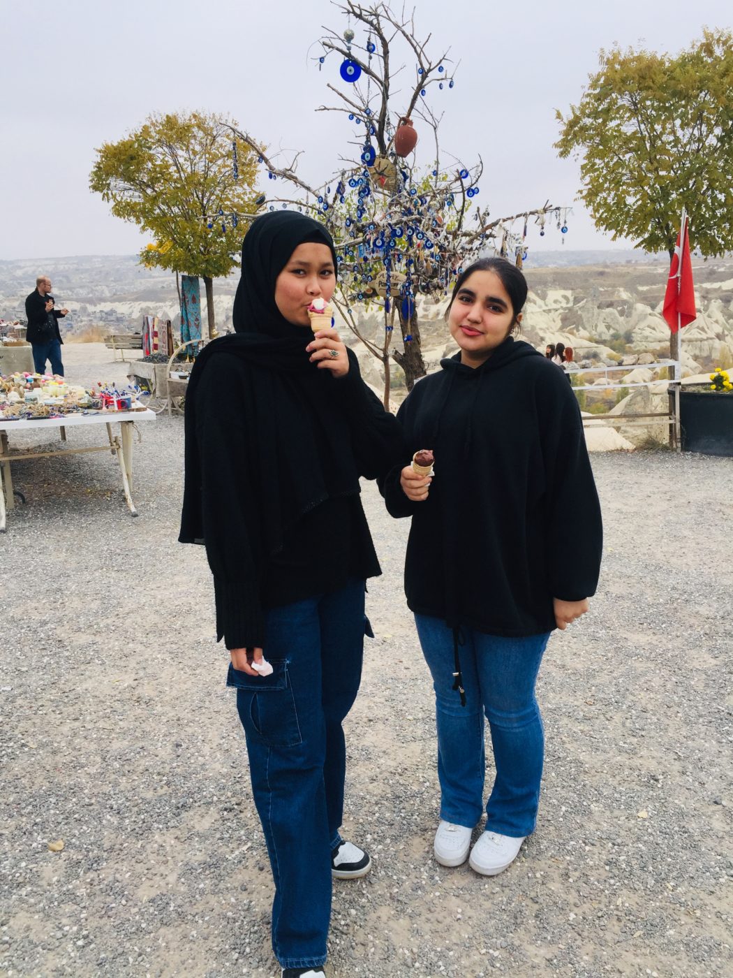 Aber auch außerhalb des digitalen gab es viel zu erleben. Gemeinsam erkundeten wir die Altstadt Adanas und durchstreiften kleine Gassen, in denen traditionelles Handwerk ausgeübt wurde. Beim abendlichen Bowling verfestigten sich Freundschaften unter den Schülerinnen und Schülern. Wunderschön war ebenso der Besuch des Strands von Mersin direkt vor der malerischen Kulisse der Mädchenburg. Auf einer Fahrt durch Kappadokien besichtigten wir zudem die berühmten Feenkamine, eine in der Antike zur Flucht vor Verfolgung errichtete unterirdische Anlage, das geschichtsträchtige Taubental und Handwerksbetriebe, in denen unter anderem das vor 16 Jahren entdeckte Sultanitvorkommen weiterverarbeitet wird.