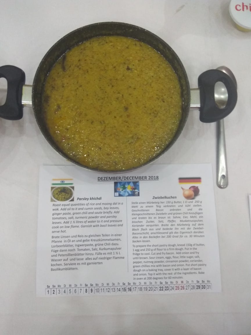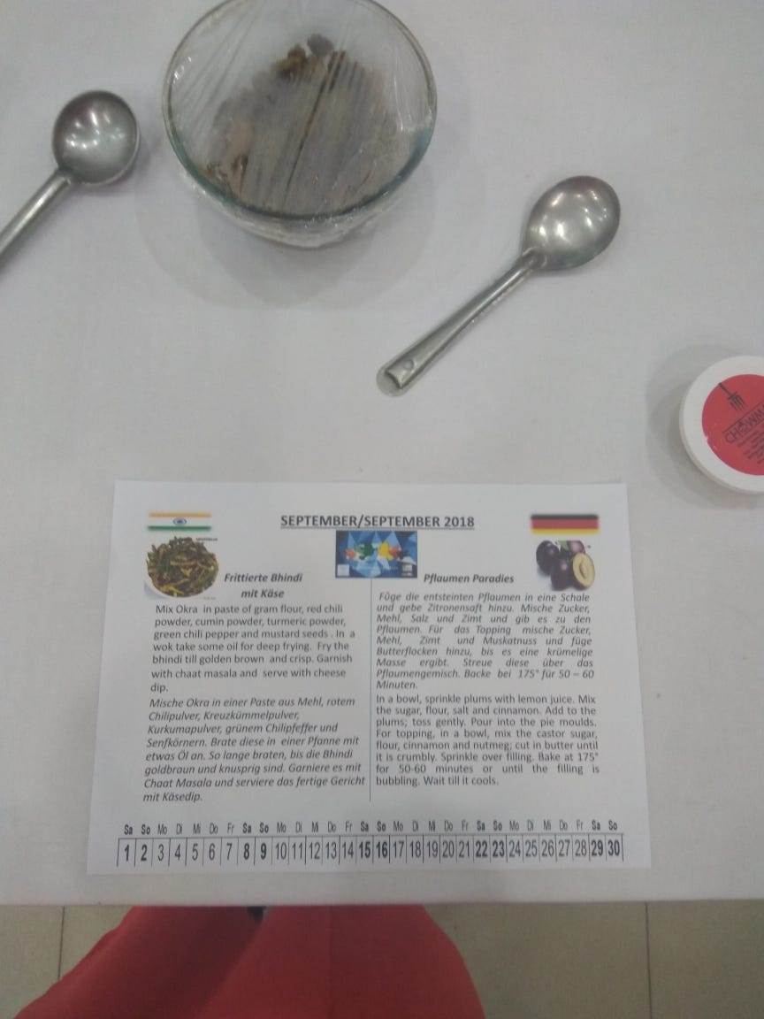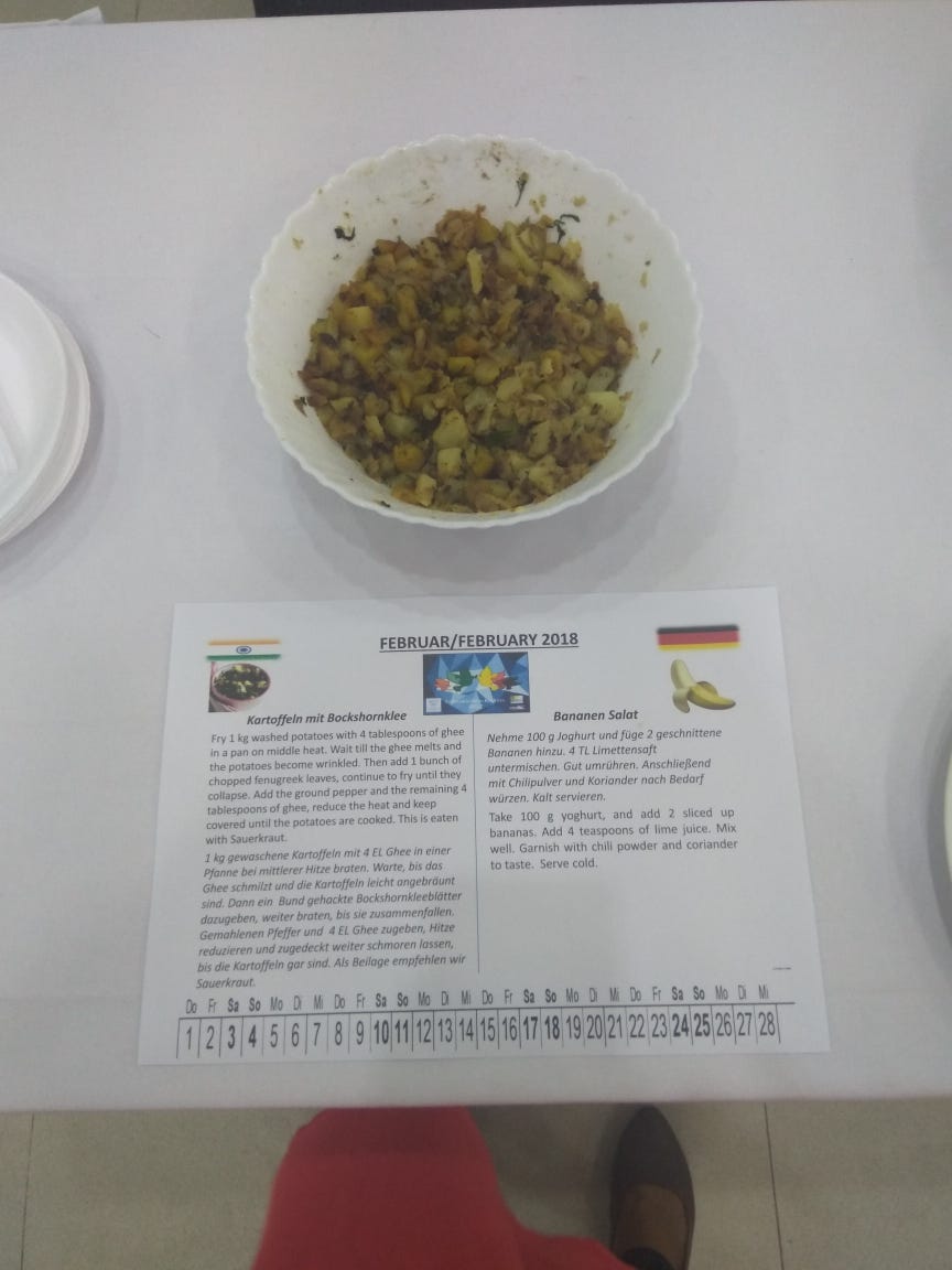 Nach dem offiziellen Teil der Veranstaltung erfolgte die Verköstigung der am Samstag vorbereiteten selber entworfenen indischen Rezepte „with a German twist“ und die Präsentation des Rezept-Kalenders. Die Resonanz war durchweg positiv.
