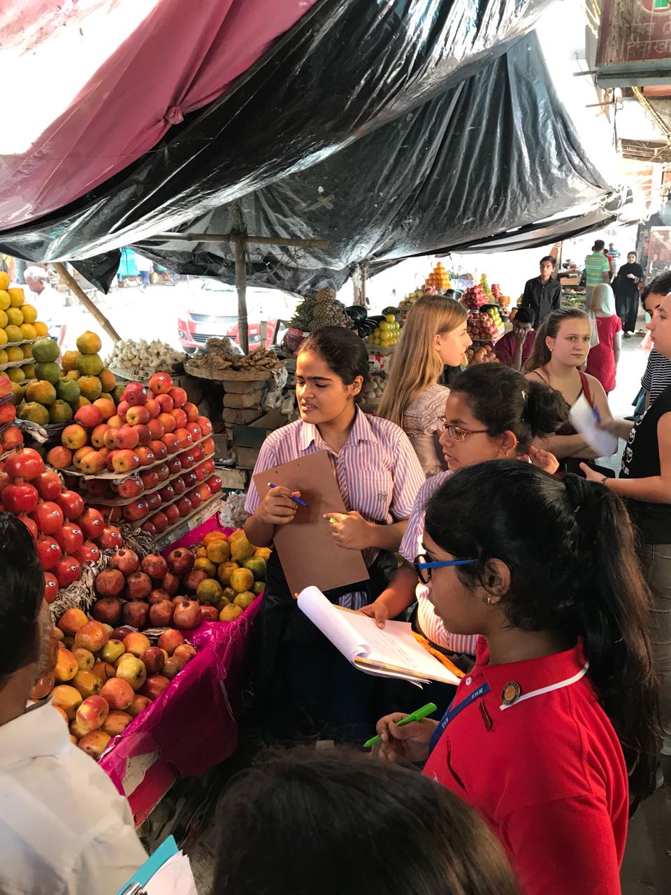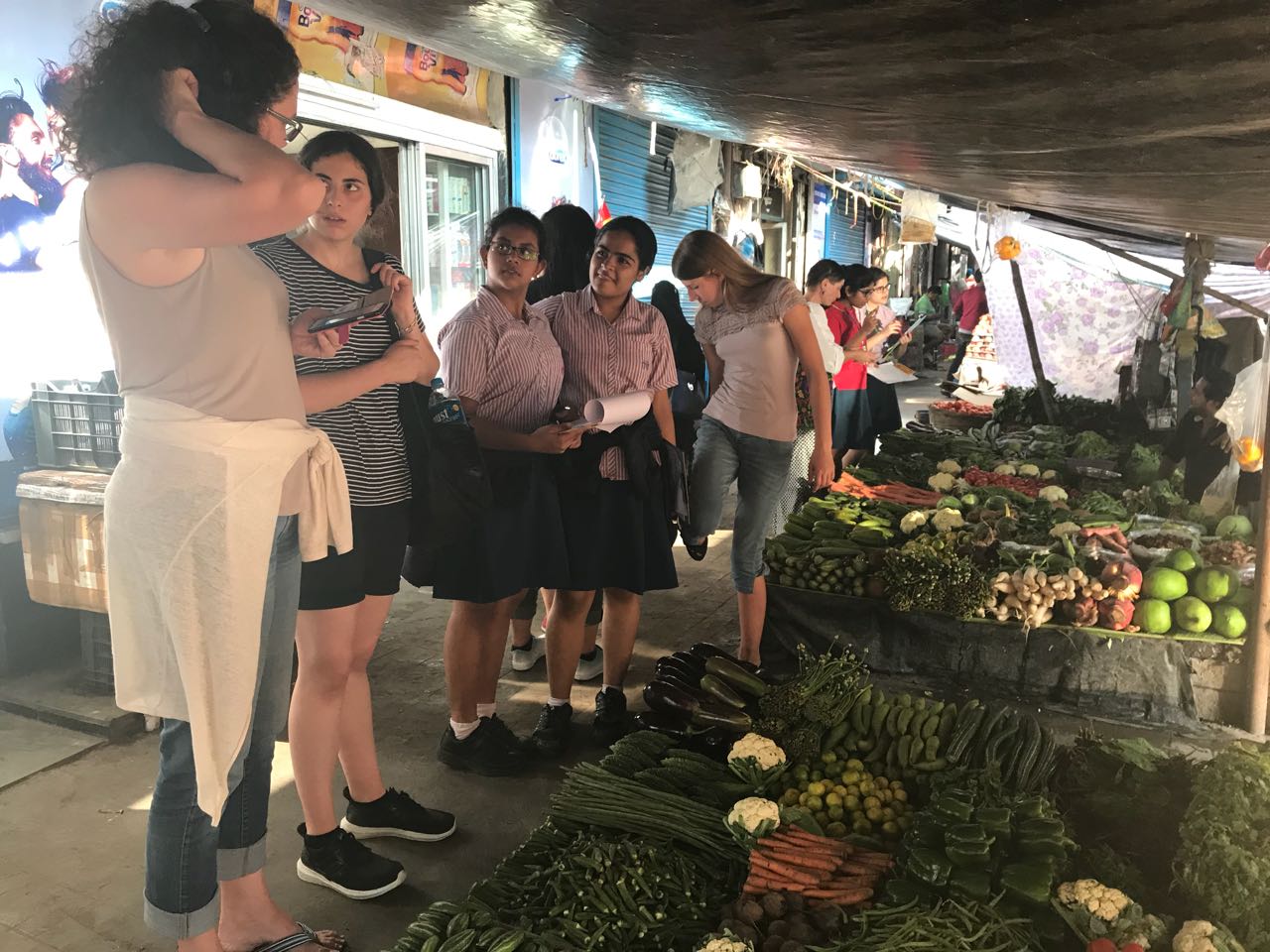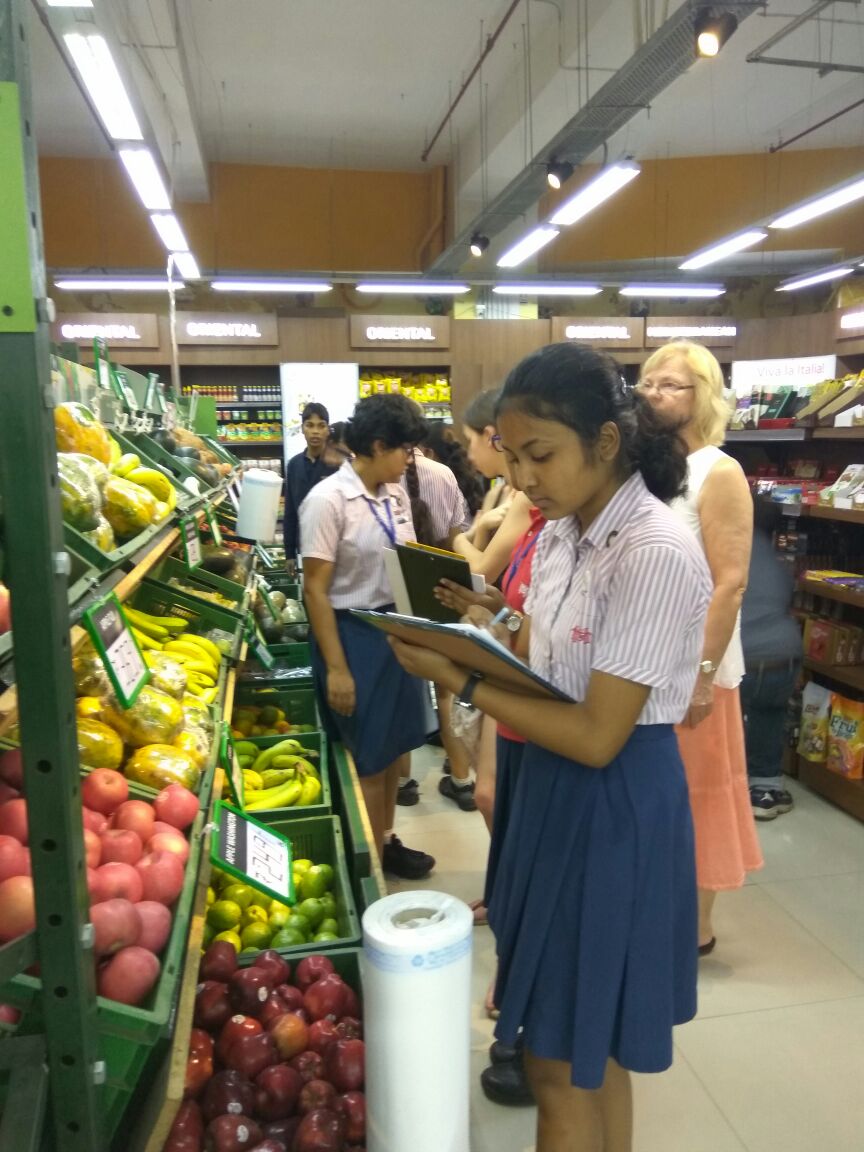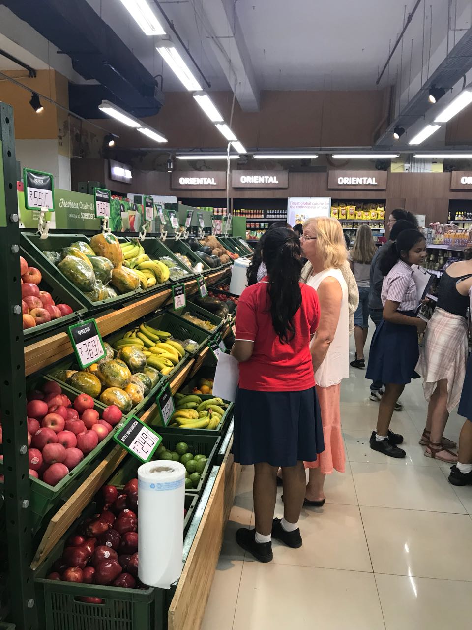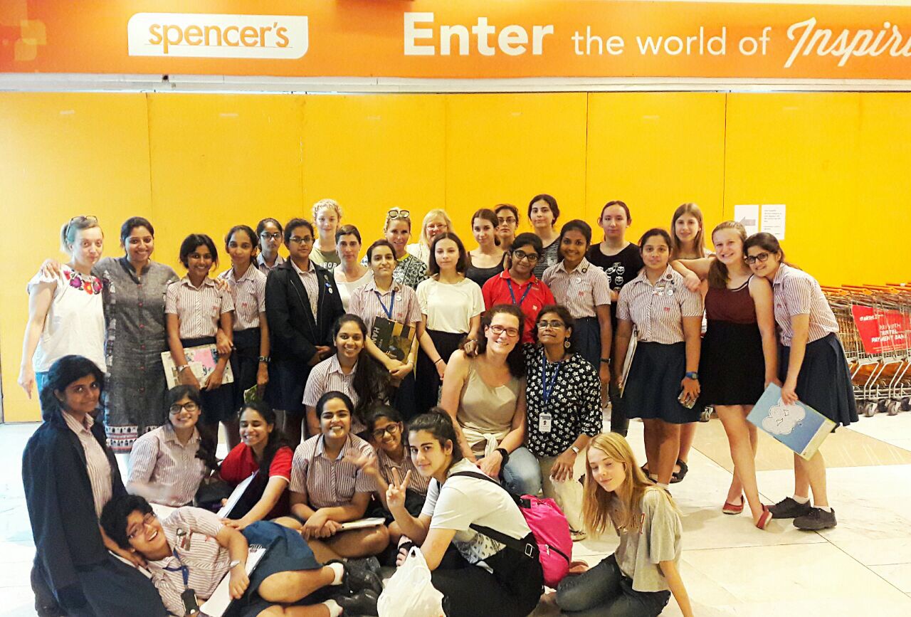 Nach einer kurzen Einführung der neuen Schülerinnen in die Thematik und in bereits geschehene Arbeiten beim Austausch in Deutschland, lag der erste Schwerpunkt des Tages auf der Erarbeitung von Interview-Fragen für den lokalen Markt Beck Bagan und kontrastierend dazu den Supermarkt Spencer’s in der Luxus-Mall direkt daneben. Beide Orte befinden sich in fußläufiger Umgebung der Modern High School.