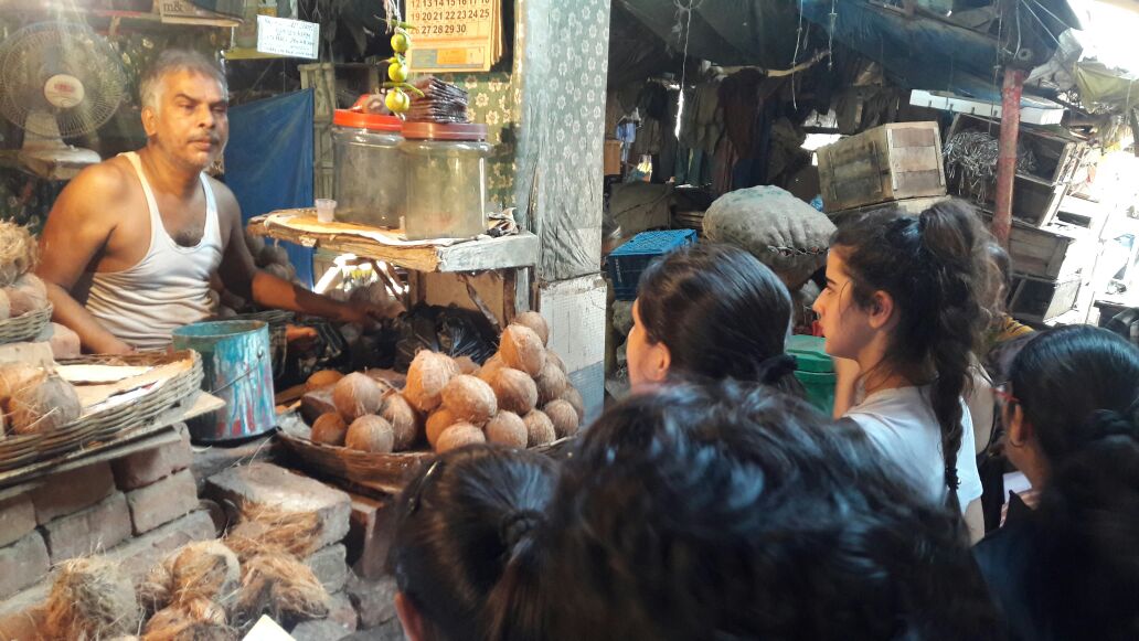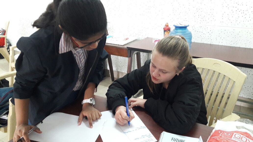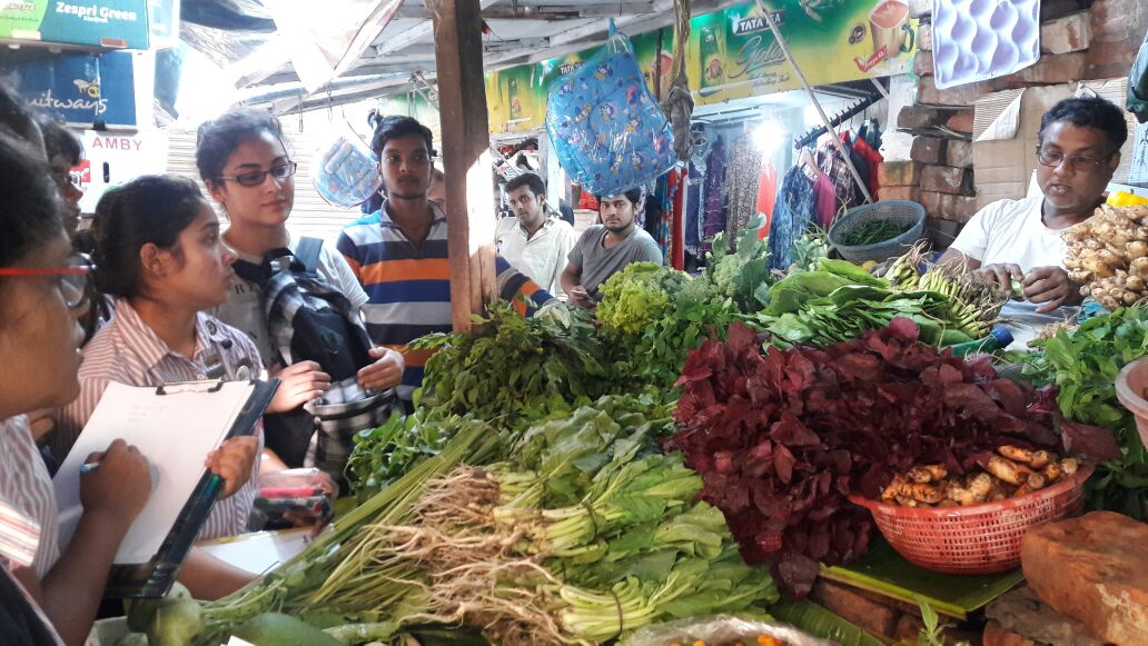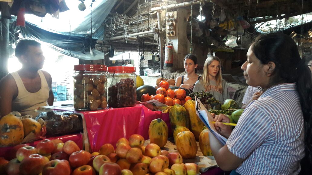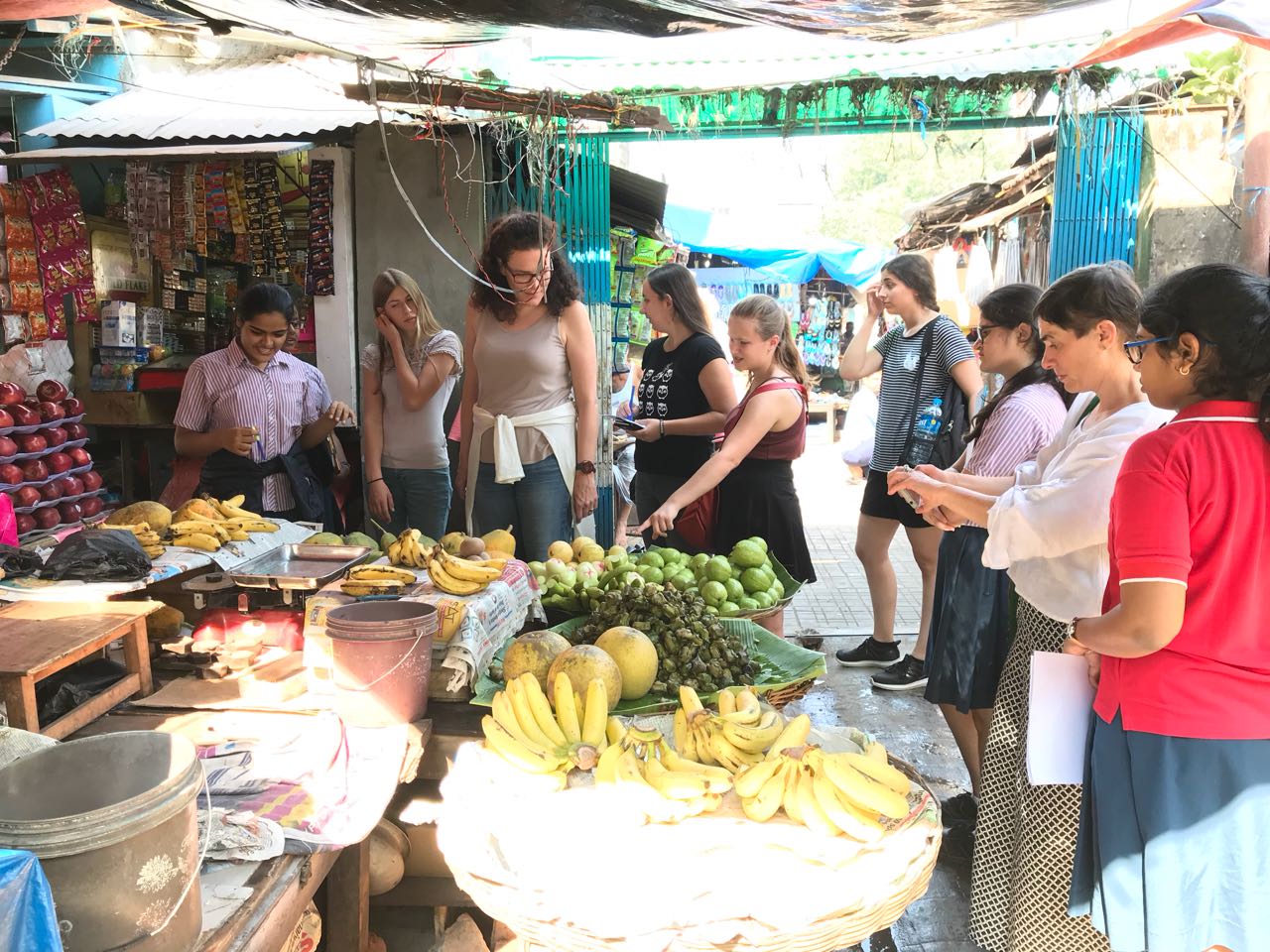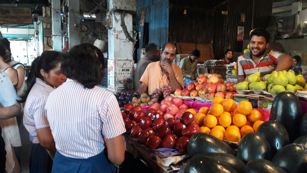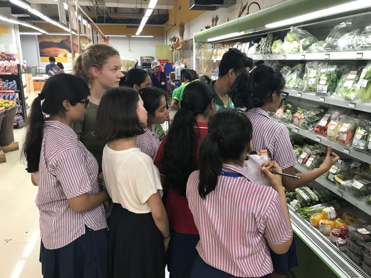 Nach einer kurzen Einführung der neuen Schülerinnen in die Thematik und in bereits geschehene Arbeiten beim Austausch in Deutschland, lag der erste Schwerpunkt des Tages auf der Erarbeitung von Interview-Fragen für den lokalen Markt Beck Bagan und kontrastierend dazu den Supermarkt Spencer’s in der Luxus-Mall direkt daneben. Beide Orte befinden sich in fußläufiger Umgebung der Modern High School.