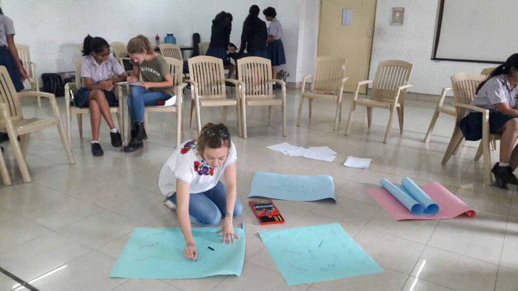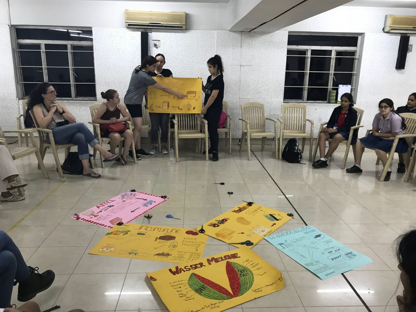 Der heutige Tag stand ganz im Zeichen der Projektarbeit an den Food Trail Postern. Geleitet wurde der Workshop von Laura Klatt aus Berlin, einer freien Mitarbeiterin des Goethe-Instituts in Kolkata.