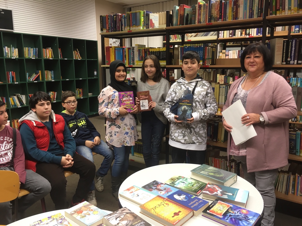 Stolz durften alle Leser und Leserinnen sich ein neues Buch aussuchen. Frau Henning stellte uns diese freundlicherweise zur Verfügung. Nach einer Siegerehrung und einer kleinen Urkunde für jeden, durften die fleißigen Leser die Bücherei verlassen. Für alle Beteiligten war es ein angenehmer Wettbewerb und wir freuen uns schon auf den Stadtentscheid im nächsten Jahr, bei dem Nesli, begleitet von ihren Eltern und Frau Wanders, unsere Schule vertreten wird.