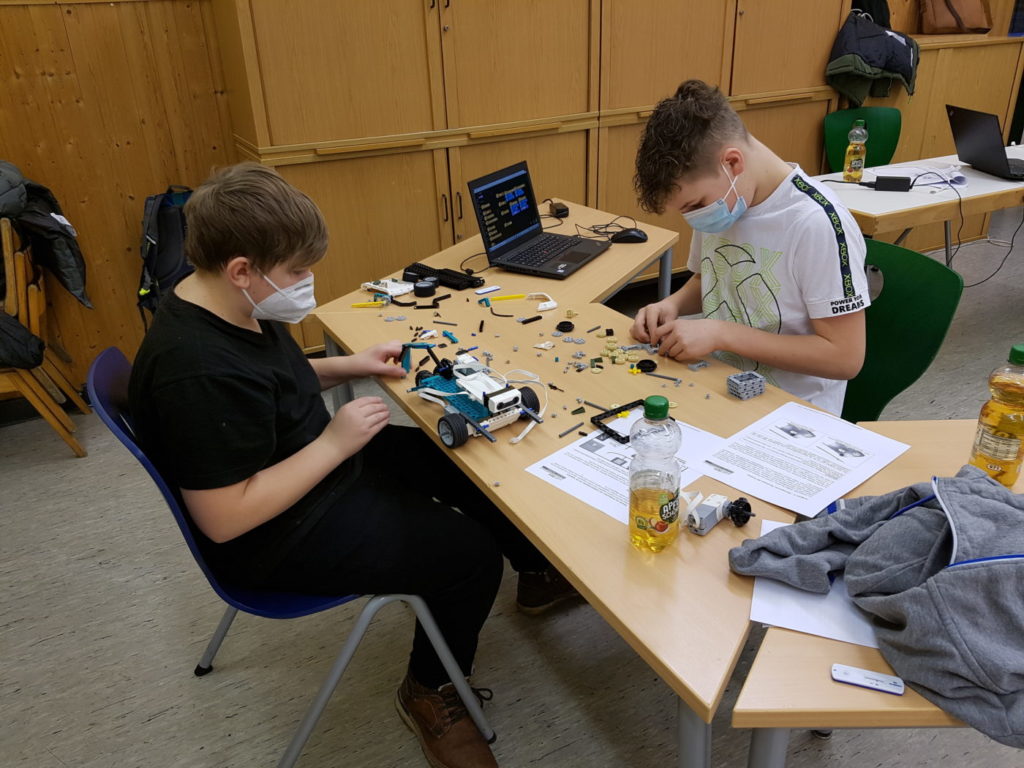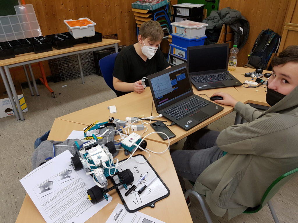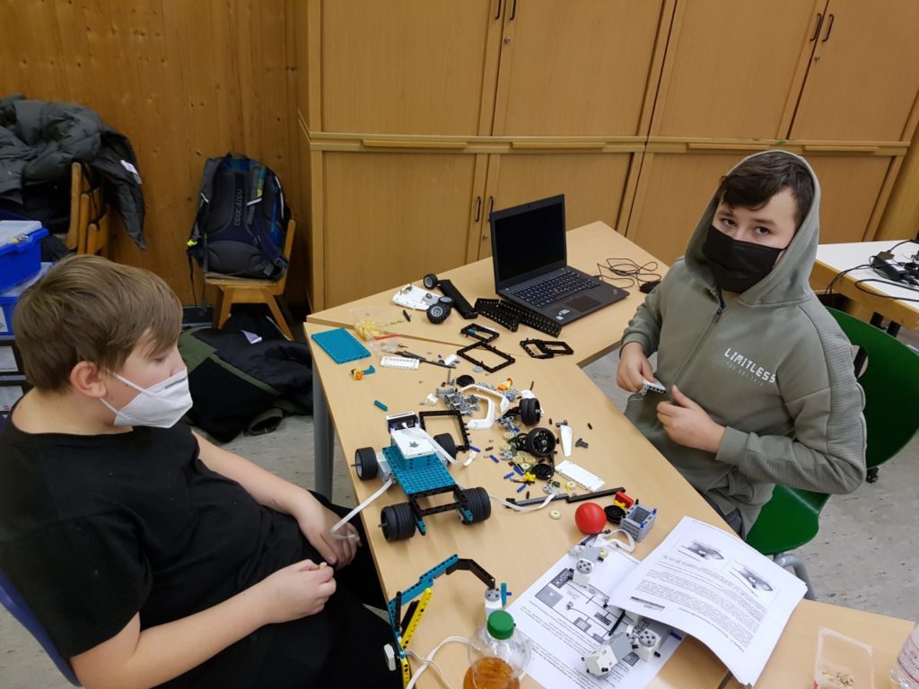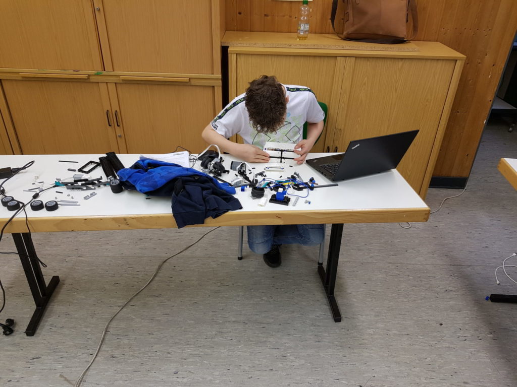 Auch ein Ausspruch von Miguel de Cervantes passt sehr gut zum gemeinsamen konstruieren und programmieren von Robotern: „Alles, worauf die Liebe wartet, ist die Gelegenheit.“ Und genau diese bekamen die SchülerInnen der Roboter-AG am 15. und 16.12., so dass sie an beiden Tagen ganztägig kreativ tätig sein konnten. Passenderweise waren zwei Tage zuvor die Aufgaben für den neuen landesweiten Robotik-Wettbewerb des ZDI veröffentlicht worden. Daher entwickelten die fleißigen jungen Baumeister und Ingenieure der AG fünf verschiedene Roboter-Modelle, die jeweils ein bis zwei der Aufgaben lösen sollen.