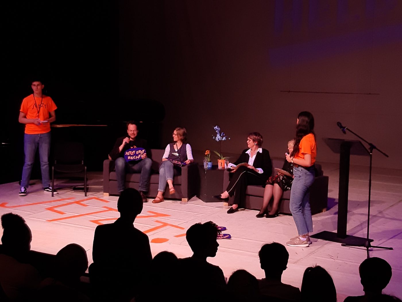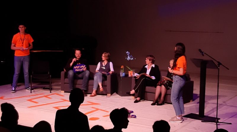 Die Eröffnung am Mittwochabend im Consol-Theater moderierten Tugce und Ahmed aus dem 12. Jahrgang der GSÜ. Unter anderem interviewten sie auch die zur Eröffnung des Festivals angereisten Vertreterinnen der Stadt und der Landesregierung.