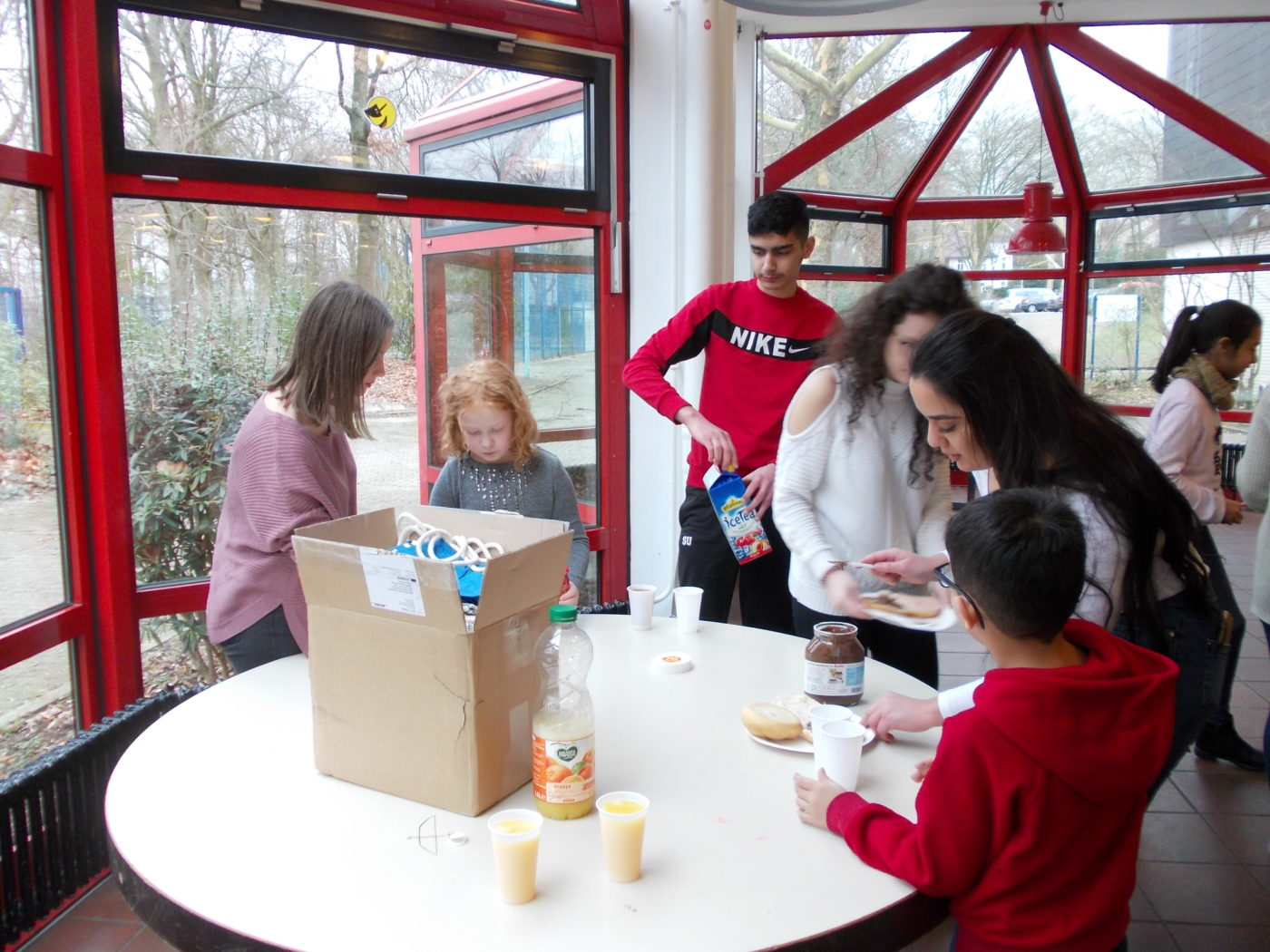 Ende Januar 2019 holten dann 22 aufgeregte Balus ihre 22 nicht minder aufgeregten Moglis zu einem gemeinsamen Frühstück in der Mensa der Gesamtschule Ückendorf ab. Einige Eltern nahmen die Einladung an und begleiteten ihre Kinder zu dieser ersten Veranstaltung.