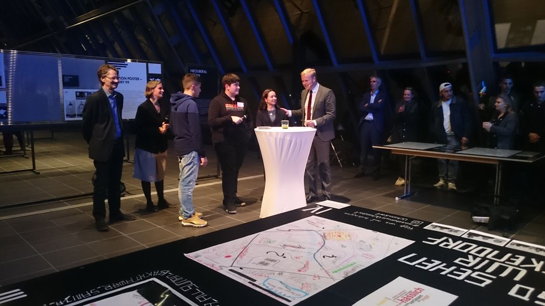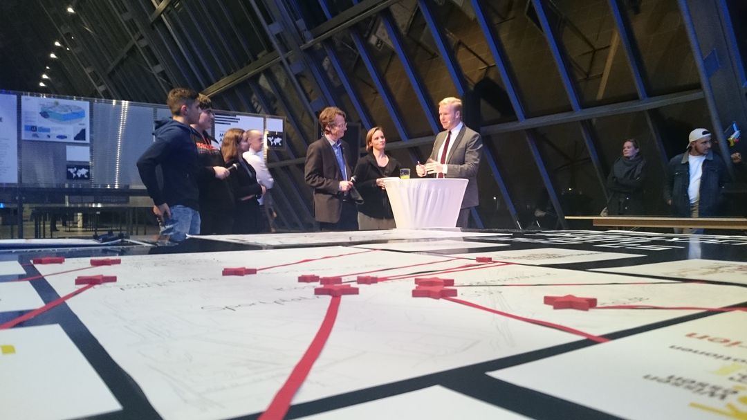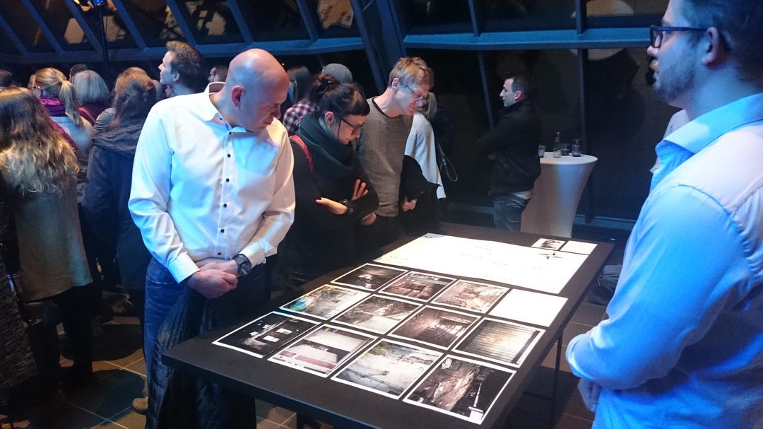Am Donnerstag, 23.11.2017, erfolgte die gut besuchte Eröffnung der Ausstellung im Wissenschaftspark. Moderiert vom WDR-Reporter Tobias Häusler diskutierten etwa Wolfgang Jung (Geschäftsführer Wissenschaftspark Gelsenkirchen), Walter Hirche (Vorstandsmitglied Deutsche UNESCO-Kommission), Uwe Schneidewind (Präsident und wissenschaftlicher Geschäftsführer des Wuppertal Instituts für Klima, Umwelt, Energie / Mitglied des Wissenschaftlichen Beirats der Bundesregierung Globale Umweltbedingungen), Ursula Kleefisch-Jobst (Geschäftsführende Kuratorin des M:AI NRW), Martin Harter (Stadtbaurat Gelsenkirchen), Anne Söfker-Rieniets (Dozentin am Fachgebiet Städtebau, Stadtgestaltung und Bauleitplanung der TU Dortmund) sowie Werner Rybarski (Leiter der aGEnda-21-Büro Gelsenkirchen).