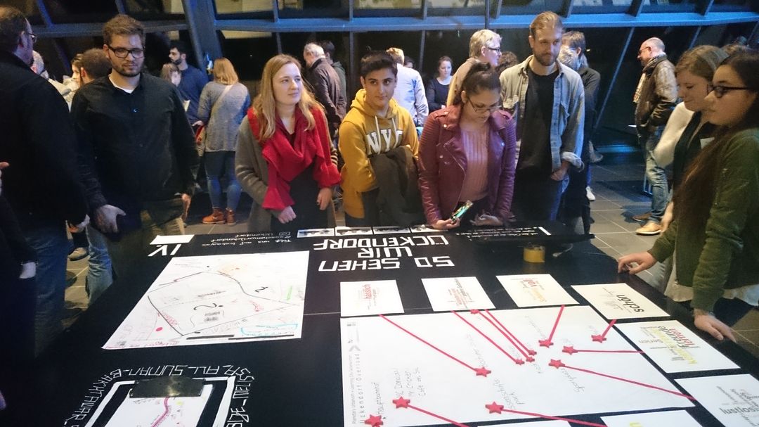 Für vier Tage waren Schüler und Schülerinnen der Klassen 9/5 und 10/6 zu Gast im Wissenschaftspark für ein besonderes Projekt: „Planetary Urbanism“. Zusammen mit Studierenden der TU Dortmund galt es, Ückendorf von einer Seite zu zeigen, die bislang nur die Jugendlichen kennen. In verschiedenen Projektgruppen wurden Karten des Stadtteils mit Leben gefüllt, mal mit Rap-Texten aus dem Viertel, mal mit Hashtags, mal mit Fotos der „lost places“ (verlassene Gebäude und Industriestandorte) oder auch mit klaren Tipps: Was ist schön und was muss besser werden? In vier Tagen lernte man sich kennen, lachte viel und schaffte dabei tolle Ausstellungsergebnisse, die noch bis 16. Dezember im Wissenschaftspark als Teil der Ausstellung „Planetary Urbanism + Learning City Gelsenkirchen“ bestaunt werden können.