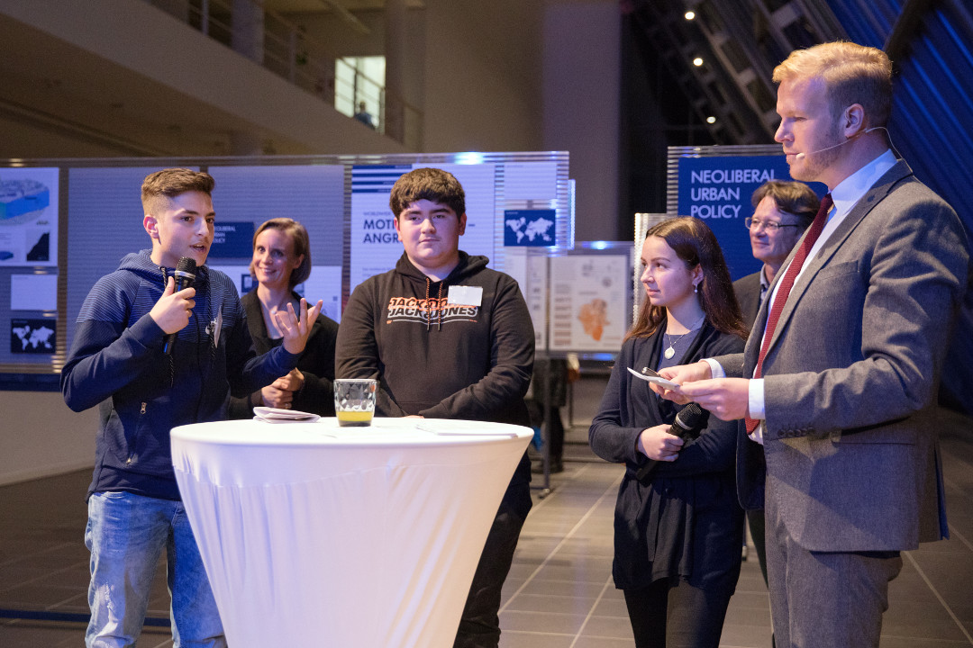 Die größte Ressonanz beim Publium fanden die Beiträge der Studenten der TU Dortmund und das abschließende Interview mit drei Schülern der GSÜ. Alle drei zeigten sich von der großen Besucherzahl unbeeindruckt und vermittelten einen lebendigen Eindruck in das Projekt.