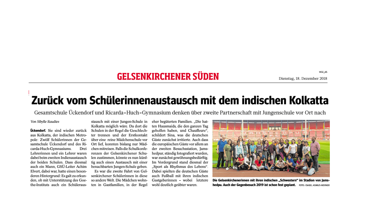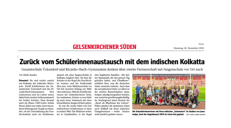 Presseschau: Die WAZ berichtet über den Indienaustausch 2018