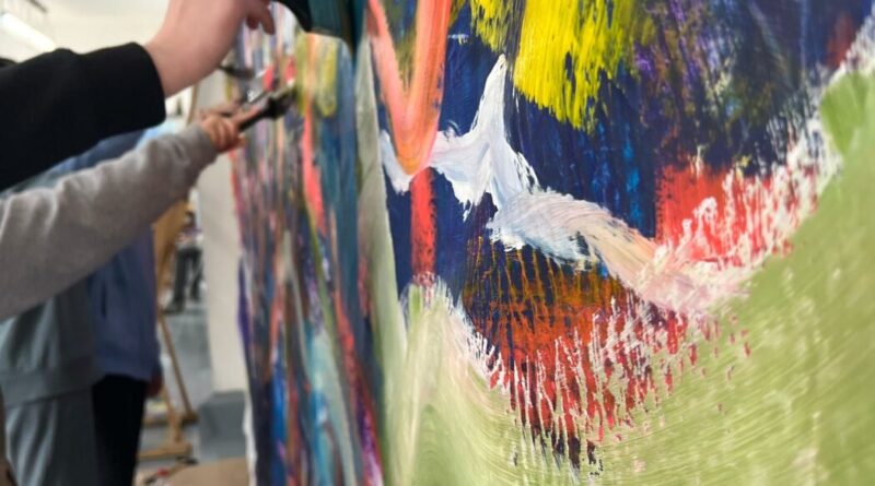 Zusammen mit den jeweiligen Künstler*innen gestalteten sie zum Ende der Woche ein Produkt, welches in einem „Gallery-Walk“ den anderen Gruppen präsentiert wurde. Den krönenden Abschluss bildete die Tanzgruppe, die in der Aula eine selbstentwickelte Choreografie tanzte und unter viel Applaus die Woche abrundete.