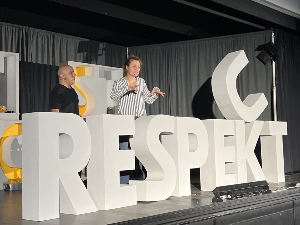 Ihr Kollege hingegen wünscht sich, dass die Jugendlichen zu Wort kommen sollen und Grenzen und Grenzüberschreitungen im Schulalltag in Form von gefilmten Clips thematisiert werden. So zum Beispiel die sexuelle Belästigung eines Mädchens im Bus durch zwei Jungen. Während die zwei Protagonist*innen die Kampagne inhaltlich vorantreiben, wird das Thema „Respekt“ in all seinen Facetten dem Publikum präsentiert. Von der Aussage „Respekt ist doch kein Waschmittel“ bis hin zu tollen Rap-Songs rund um die Themen Fairness, Mobbing, Recht am eigenen Bild, Hate Speech im Netz und falschen Influencer Vorbildern, bietet das Stück ein buntes Potpourri von ernsthaften und unterhaltsamen Szenen und Songs.