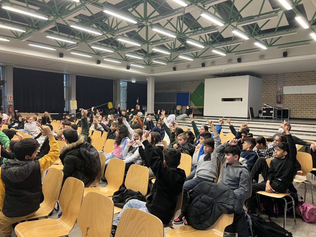 Nach einigen Vorabsprachen und Planungen war es am 28.11.2022 endlich soweit. Der 5. und 6. Jahrgang der Gesamtschule Ückendorf kam in den Genuss, das Stück „Respekt für dich“ in der Aula der Gesamtschule Ückendorf anzusehen.
