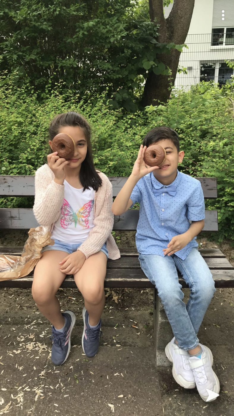 „Ich will mal von der Situation erzählen die mich persönlich sehr gerührt hat. Als die Pizza ankam und wir angefangen haben zu essen, sind D. und A. plötzlich aufgestanden. Wir haben sie dann gefragt was los ist, die beiden meinten, dass ihre Pizza sehr gerne mit den Putzfrauen der Schule teilen würden. Das hat mich echt beeindruckt, dass Kinder in  so einem  jungen Alter daran denken können. Ich habe D. sehr dafür gelobt, sie meinte zu mir ’Wenn man etwas hat, was die andere Person nicht hat, sollte man immer teilen. Teilen ist was Schönes’.  Hiermit will ich sagen, dass wir  Erwachsenen auch von Kindern lernen können.“