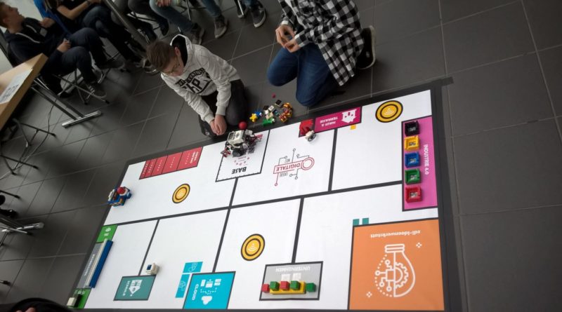 Mit selbst gebauten und programmierten Robotern trat die Gesamtschule Ückendorf gegen zwölf Teams von acht Schulen aus Gelsenkirchen, Herten, Marl und Recklinghausen beim Wettbewerb des ZDI-Netzwerk Gelsenkirchen an. Getreu dem Motto des diesjährigen Wettbewerbs „Unsere digitale Welt“ ließen die Schüler ihren Roboter W-LAN Hot-Spots installieren, ein YouTube Video bewerten oder Haushaltsroboter reparieren. Unsere Mannschaft (mit den jüngsten Teilnehmern des Wettbewerbs) erkämpfte sich dabei den achten Platz.