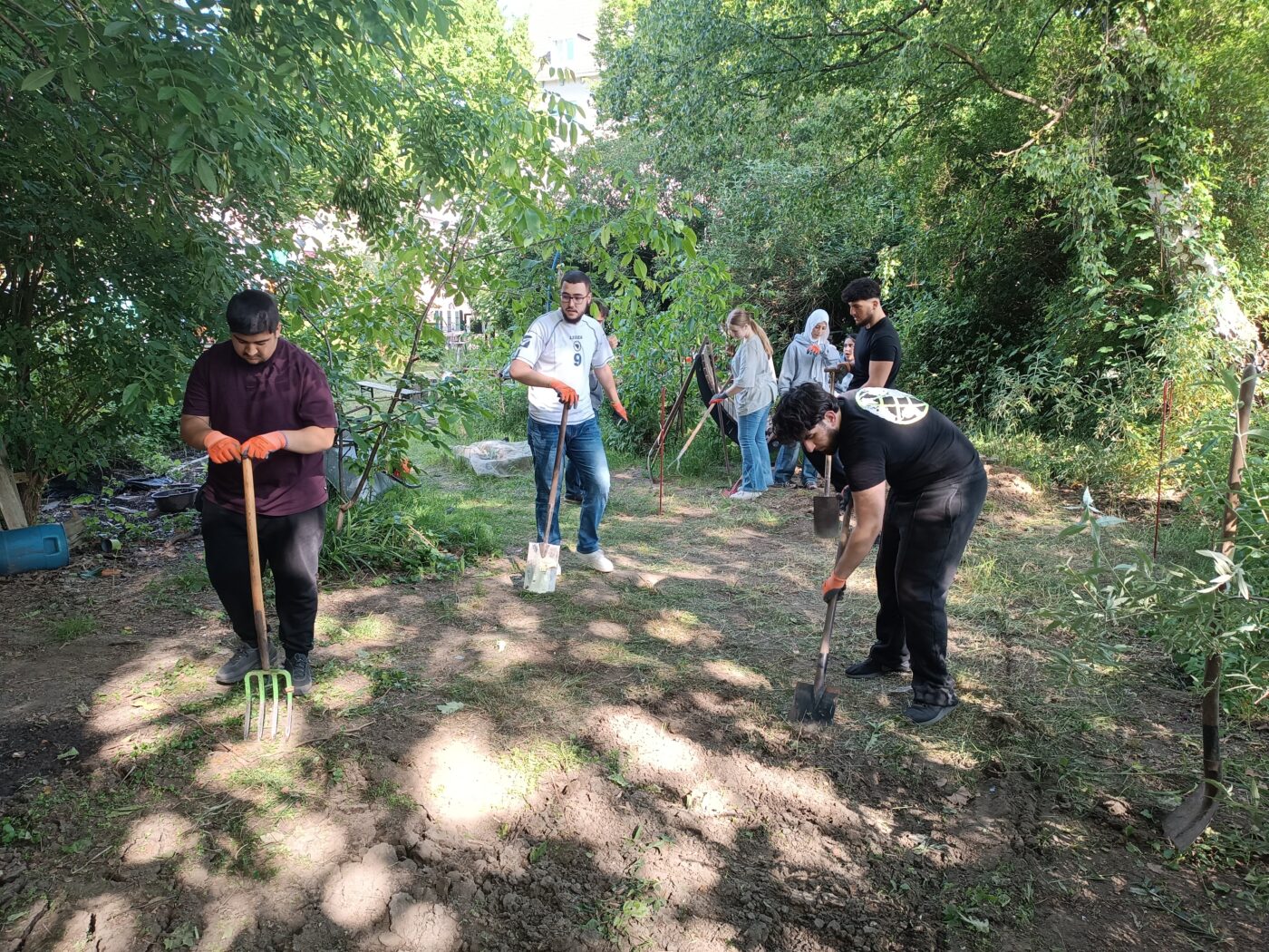 Einige sozial engagierte Schüler und Schülerinnen der GSÜ haben sich nicht gescheut, mit schweißtreibender Arbeit die Stadtteiloffensive Ückendorf aktiv e. V. zu unterstützen: