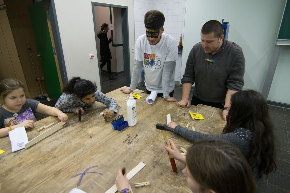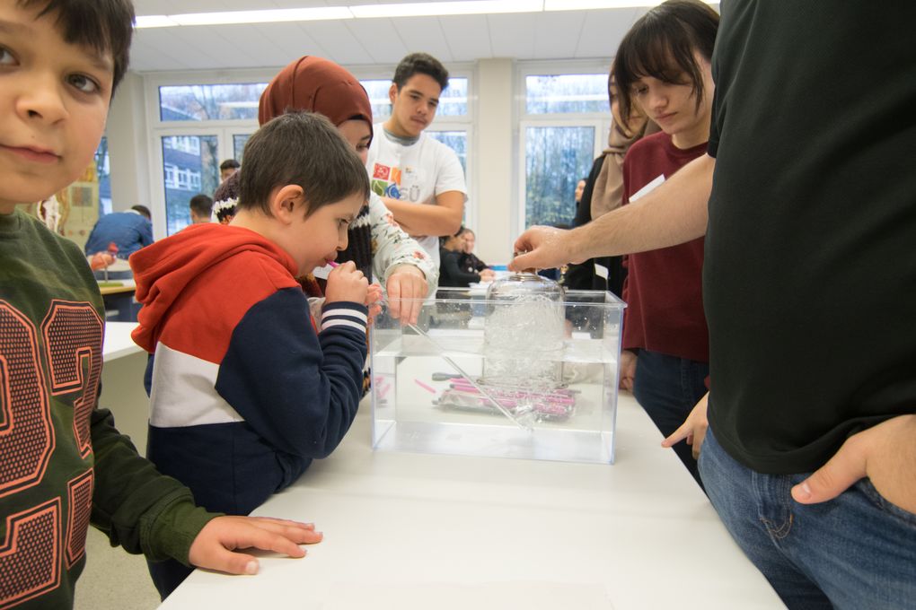 Unsere Gäste aus den Grundschulen wurden von den GSÜ-Scouts, Schülerinnen und Schüler der Oberstufe, in kleinen Gruppen durch die ganze Schule geführt. Die Scouts waren durch die T-Shirts mit dem GSÜ-Logo gut zu erkennen und sorgten dafür, dass die Grundschülerinnen und -schüler auch alle Attraktionen fanden, nicht zuletzt auch den Schulzoo.
