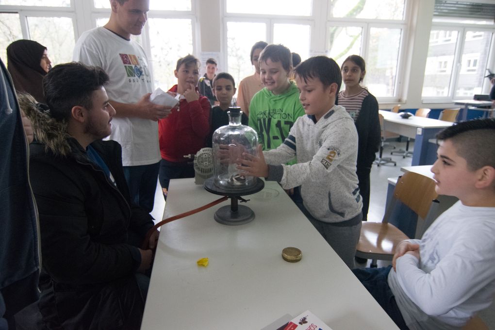 Das Angebot war vielfältig. Es gab Mitmachaktionen in den Technikräumen, Schauexperimente in den Naturwissenschaften, Aufführungen der Schulband und des Schwarzlichttheaters. Zwischendurch immer wieder mal ein Stand für das leibliche Wohl und auch die Präsentation von Ergebnissen der Projekttage, wie z.B. eine Umfrage unter den Schülerinnen und Schüler zur GSÜ.