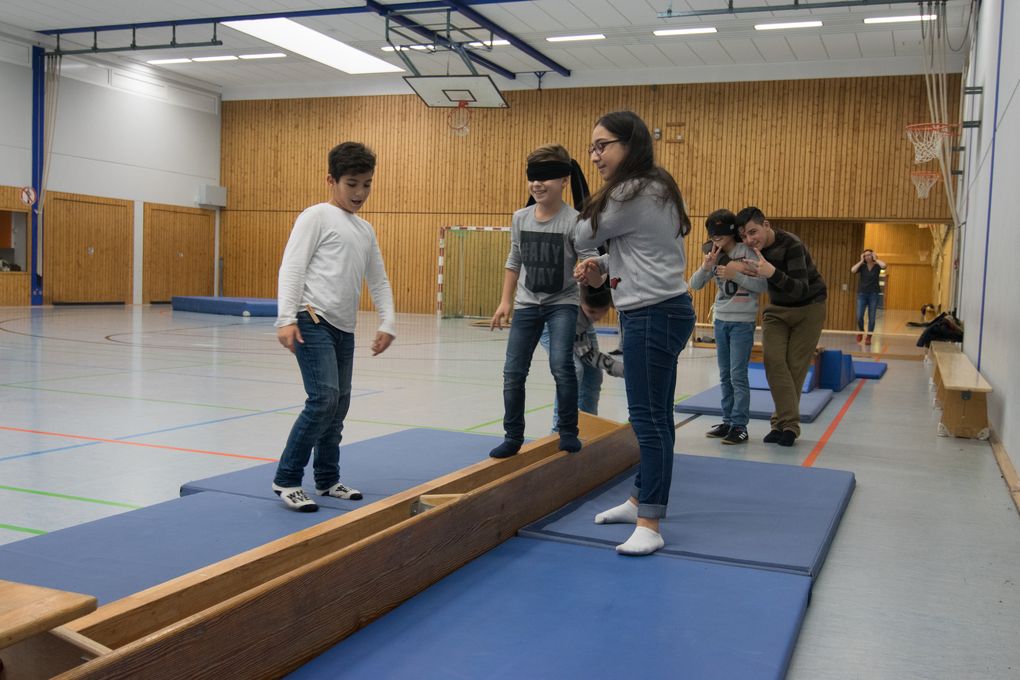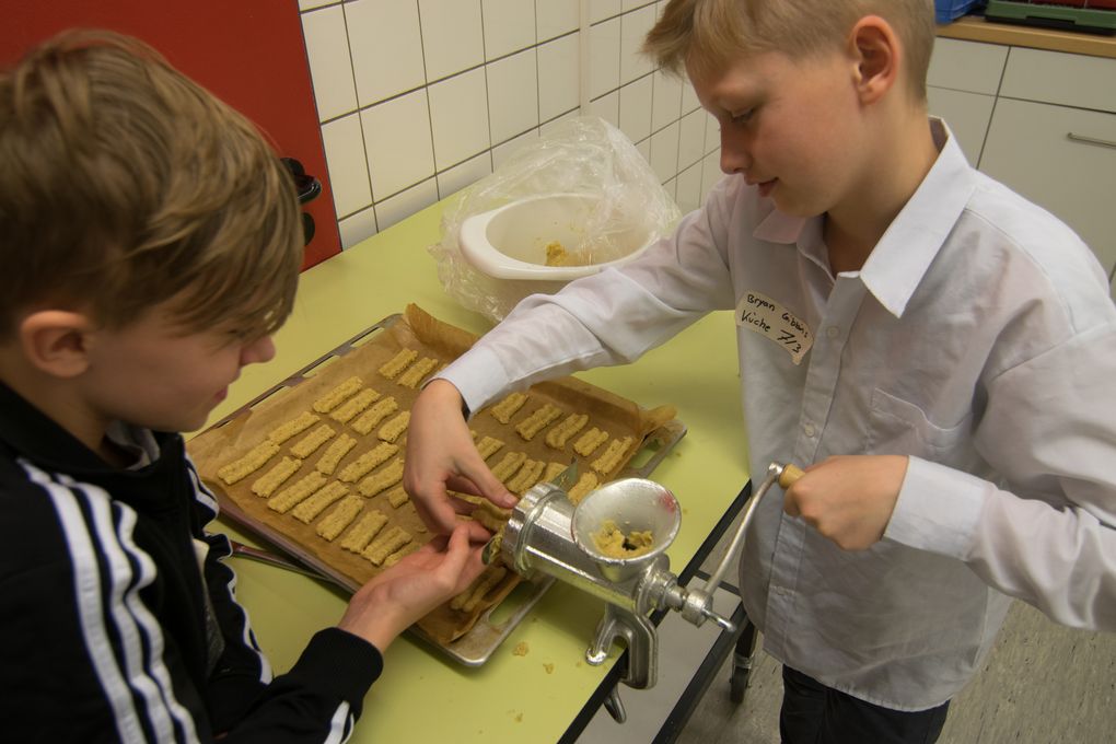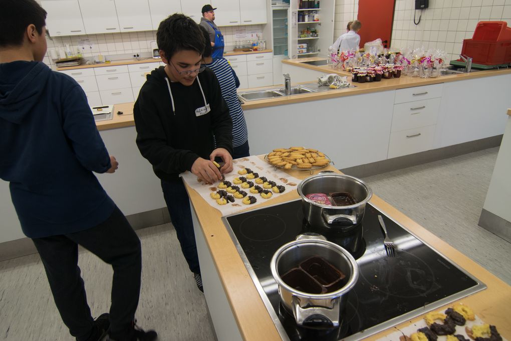 In der Turnhalle konnte man sich ausprobieren beim Torwandschießen und Basketballwerfen, Spiele der 80er-Jahre wurden wieder entdeckt und wer sich traute durchschritt den Sinnesparcour mit verbundenen Augen, geführt von einem sehenden Partner. Und in der Lehrküche wurde bereits das nächste Fest vorbereitet, essbare Schneemänner, Plätzchen und Marmeladen für den Ückendorfer Weihnachtsmarkt am 10. Dezember.