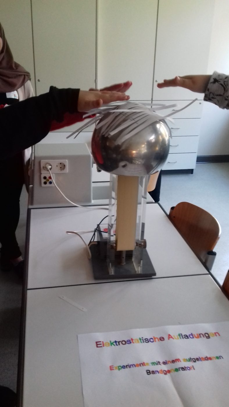 Diese spannenden Experimente wurden von den Schülerinnen und Schülern der Klasse 9.6 unter Aufsicht von Frau Dr. Werner und Herrn Scheele vorbereitet und durchgeführt.