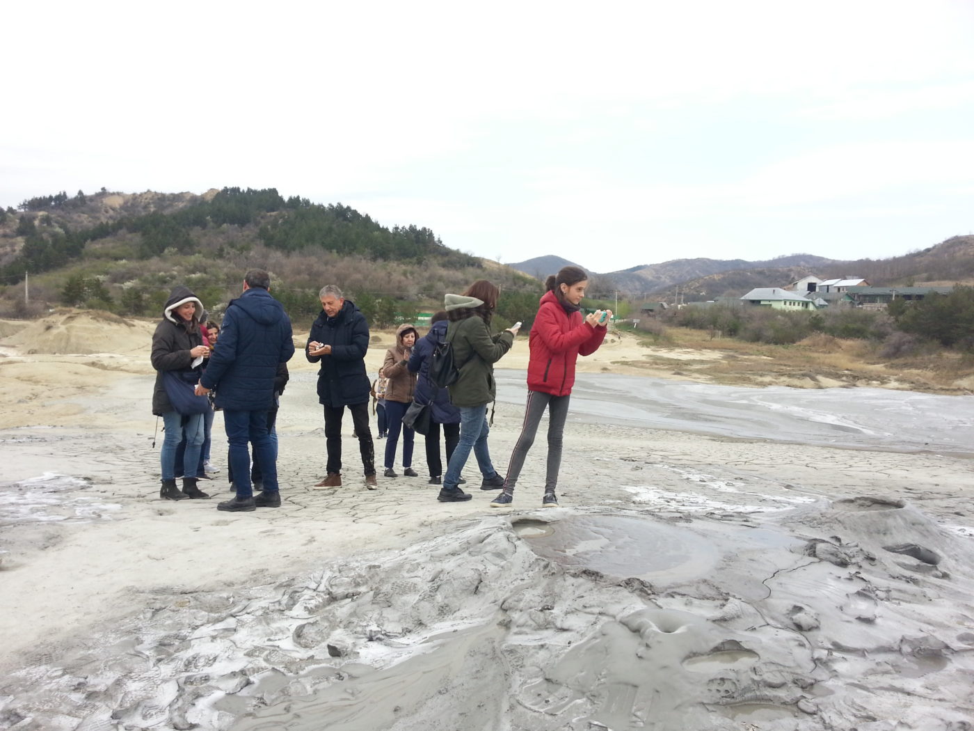 An unserem ersten Tag fand zunächst die offizielle Begrüßung seitens des Gastgeberlandes statt. Schulbesichtigung und der Workshop „Feelings´´ folgten. Anschließend ging es zum gemeinsamen Mittagessen gefolgt mit der Besichtigung der Schlammvulkane von Berca (Naturschutzgebiet).