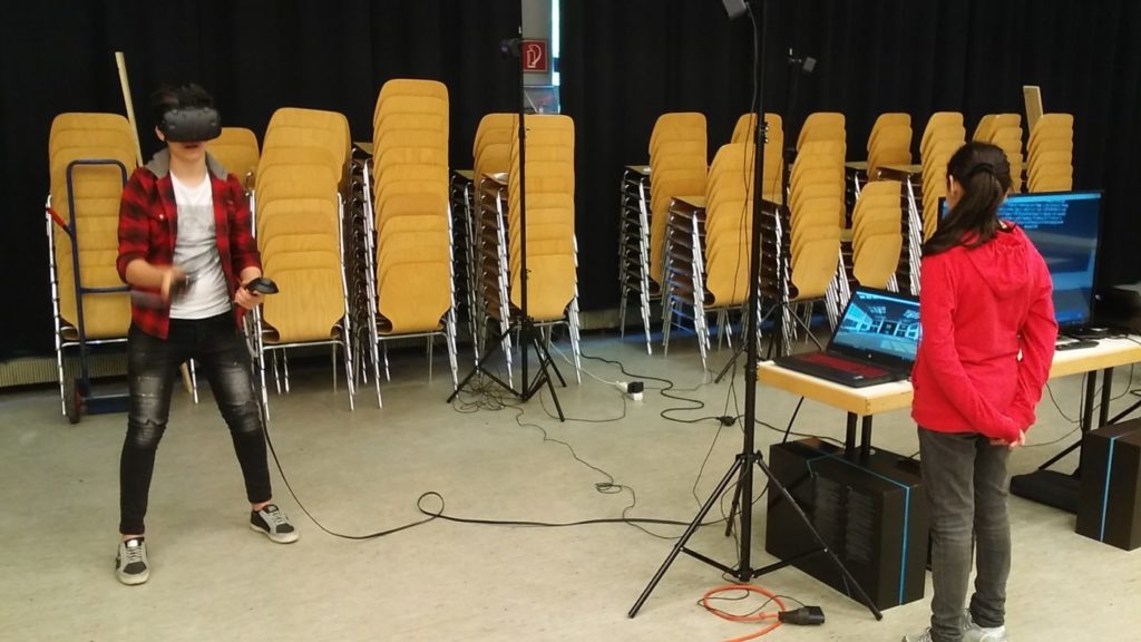 Zu den Möglichkeiten der VR gehört auch der Einsatz im Unterricht. In einem Workshop am 19. April haben die Schülerinnen und Schüler der Internationalen Förderklassen A3 und B1 eine Reihe von Anwendungen für den Unterricht erprobt. In jeweils zwei Unterrichtsstunden konnten die Schülerinnen und Schüler in die dreidimensionalen VR-Welten eintauchen und lernten dabei den Umgang mit verschiedenen Apps aus den Bereichen Sport, Koordination, Technik und Kunst. Die Schüler hatten ersichtlich Spaß dabei, die verschiedenen Apps zu testen und sich in der bisher ungewohnten VR-Welt auszuprobieren.
