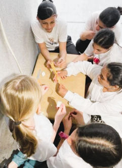 Die Mädchenteams, die zuvor über einen längeren Zeitraum in der Schule mit ihrer Lehrkraft trainierten, starteten voller Tatendrang in den Tag. Für zwei Teams hieß die erste Station „Marshmallow-Challenge“. Aus 20 Spaghetti, einem Meter Klebeband, einem Meter Bindfaden und einem Marshmallow soll ein stabiler Turm gebaut werden, der einen Marshmallow auf der Spitze trägt. Der Turm muss freistehen und darf nicht in sich zusammenfallen.