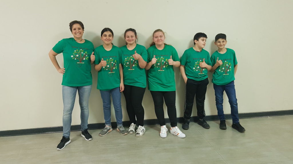 Dank des Fördervereins konnten für den Auftritt der Ukulele AG auf dem internationalen Kinderfest der Schule T-Shirts bestellt werden. In sattem Grün strahlten die Wilden Ukulelen bei ihrer dritten Bühnenerfahrung. Hier wurde ein eigener Song für die Schule präsentiert. Diesen hatten die jungen Musiker zuvor selber geschrieben und zu der Melodie von „Tom Dooley“ (dieses Mal mit Akkordwechsel von F-Dur auf C7) gesungen.